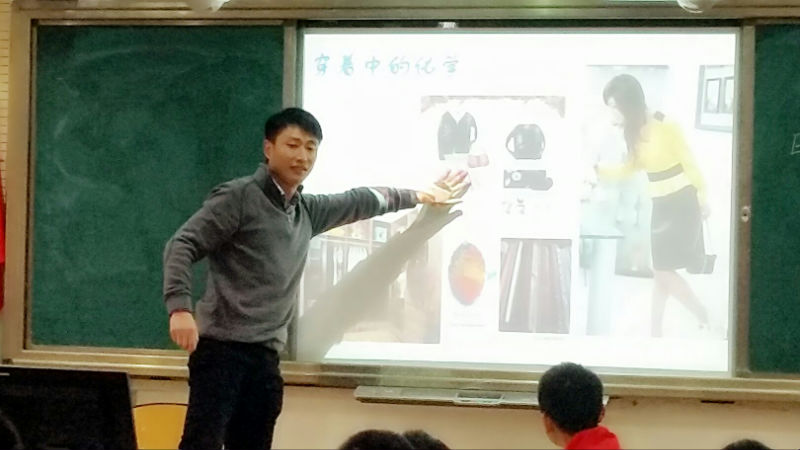 紧接着,周爸一一展示了穿着、食品、起居、交通等生活中随处可见的化学产品和现象,脑洞大开的孩子们热烈地抢答着一个个问题,回答中不时冒出“3D立体打印”、“纳米”、“腐蚀”、“溶解”这些科技词汇,丰富的知识储备令几位围观家长叹为观止。