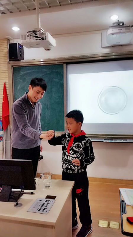 为了这堂课,周爸和周妈可是抱着满满几个纸箱有备而来。等他们把琳琅满目的实验器皿摆上课桌,早就翘首以待的孩子们恨不得个个都变成长颈鹿,好伸过脖子来看个究竟。