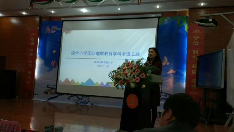 2016年11月30日上午9点,成都市教科院在成都市高新区新科学校举行“成都市中小学国际理解教育课程实验研讨会”,本次会议为了检验成都市中小学校三年来开展国际理解教育课程实验的成果,交流各课程实验基地,分享各课程实验学校的成功检验,反思存在的主要问题,并就如何进一步推进国际理解教育的课程实验进行探讨,我校文化交流中心胡冰清老师参加此次研讨会。