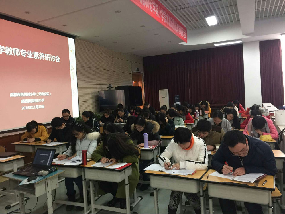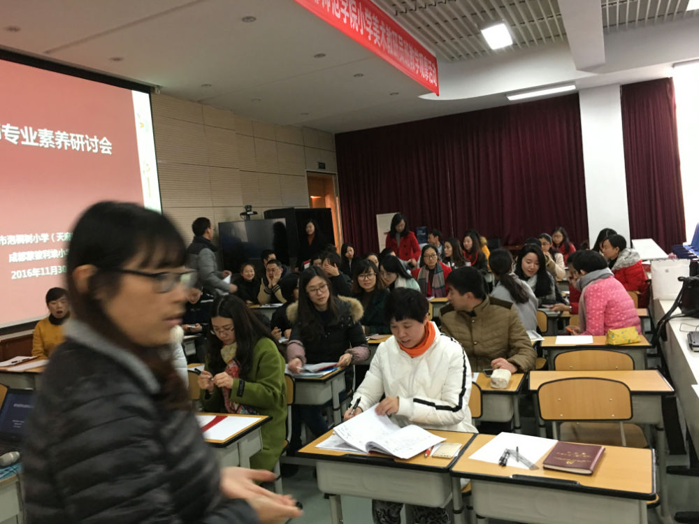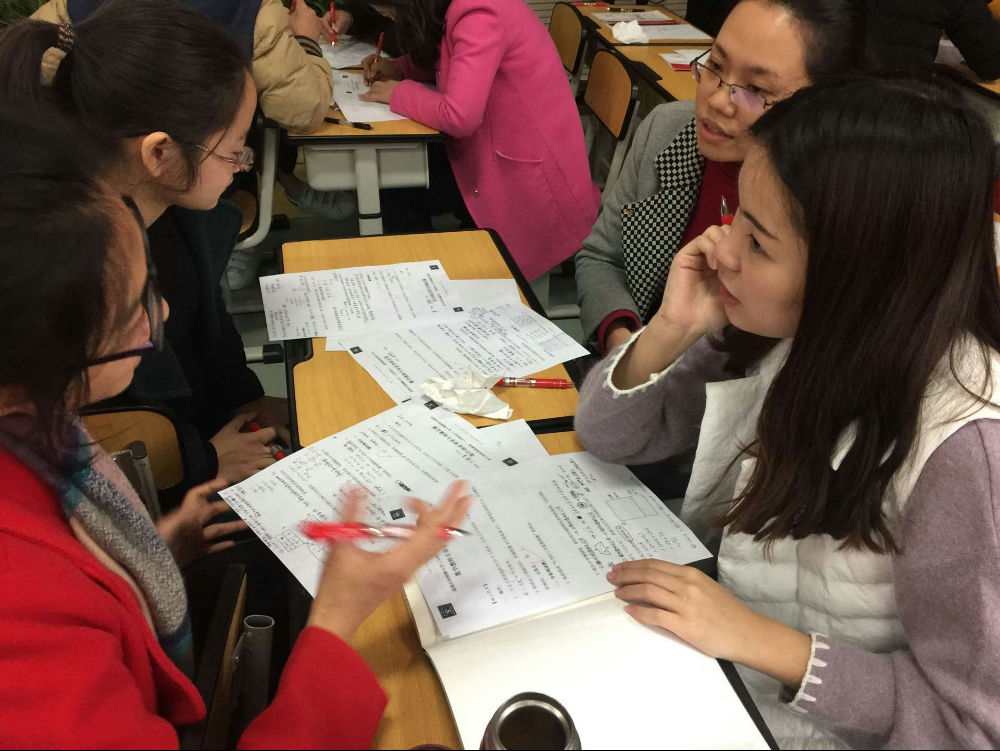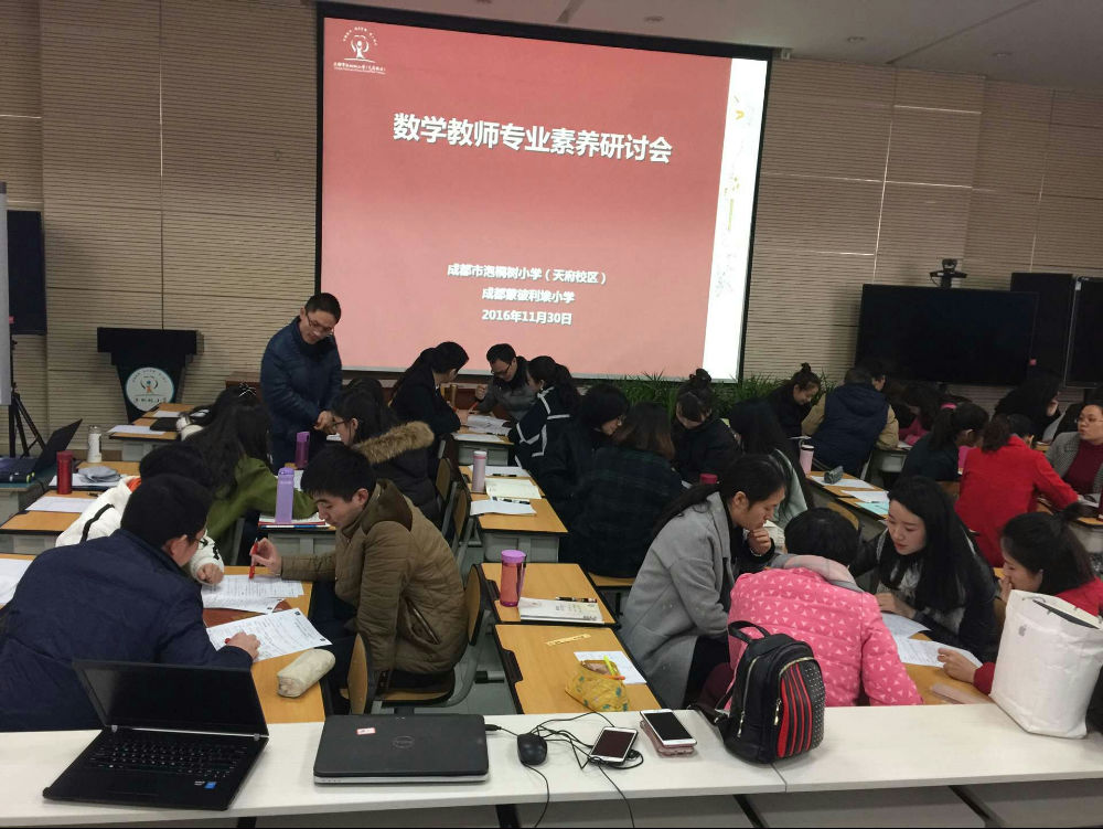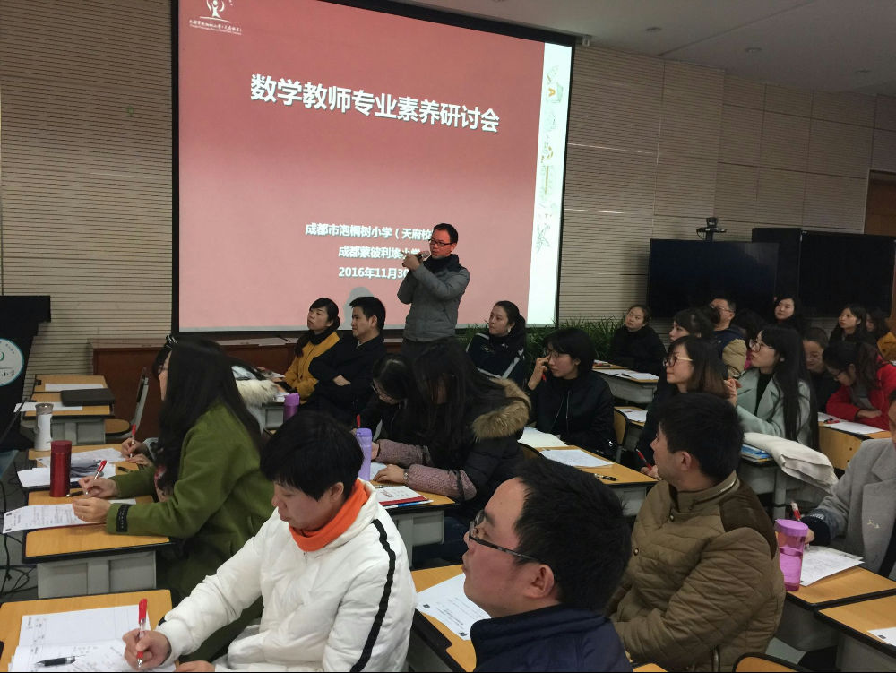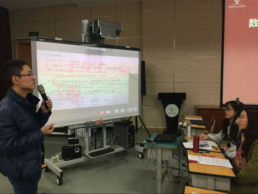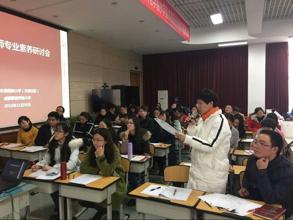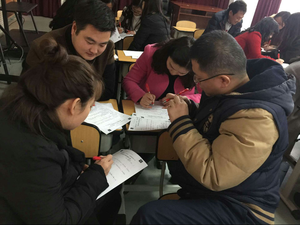 11月30日下午,多功能厅传来了这样的声音“我有疑问,我有补充,我有欣赏,我有建议……”听到这些语言模版,你可能会认为来到了某位数学老师的分享式课堂上。可当你走近一看,却发现课堂上没有一名学生,那是怎么回事呢?原来是泡天、蒙小两校的老师们在进行“专业素养研讨会”,老师们今天都客串了一次学生,完整的经历了一次分享式课堂的过程。