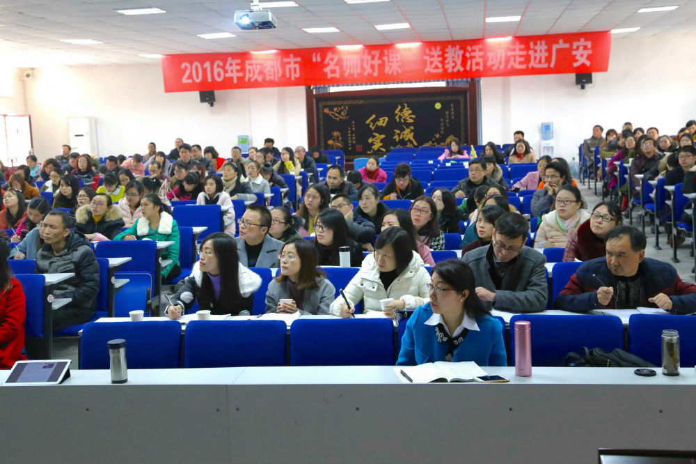 2016年11月30日,成都市教育局继续教育中心协同成都市教科院组织的“名师好课”送教到广安,此次活动有小学、初中、高中的学科送教活动,参与的是广安所有区市县的数学老师代表500多人。我校游琼英主任作为小学数学的送课老师参与此次活动。
