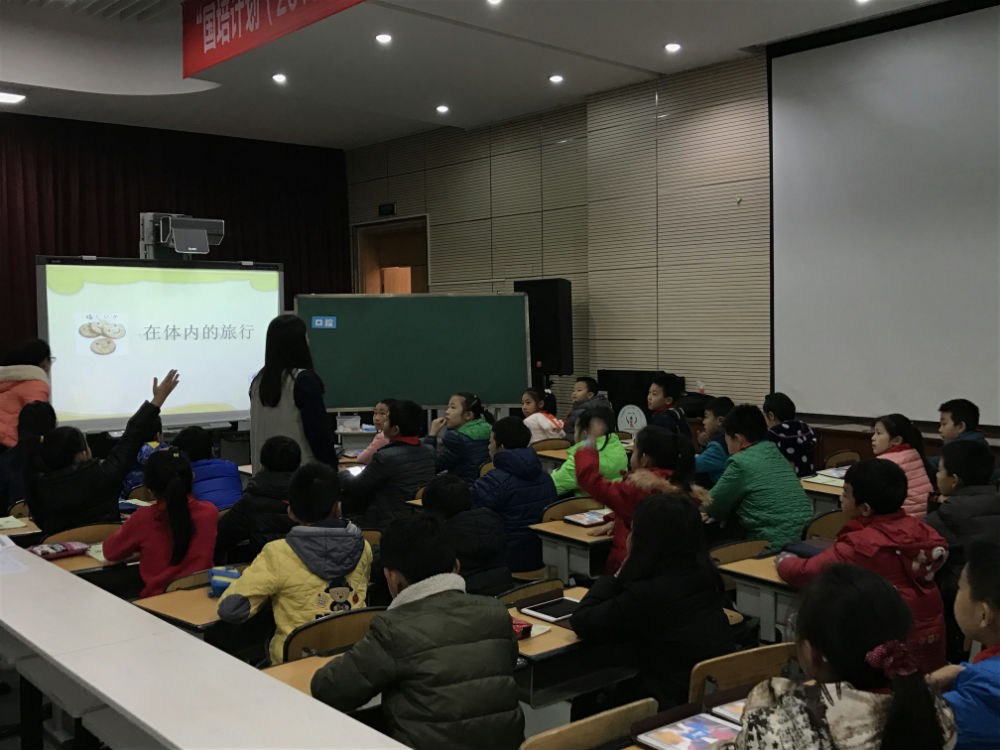 12月2日,一堂充分借力数字一对一技术平台的科学课在我校多功能厅展开研讨。执教者姚湘宁老师与四年级三班的孩子们在愉快融洽的课堂氛围中对食物在身体里是怎样旅行的,食物所经过的每一个“景点”都有什么功能等问题进行了深入探究、讨论、分享。