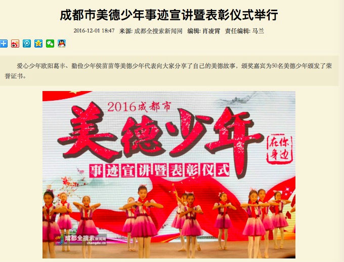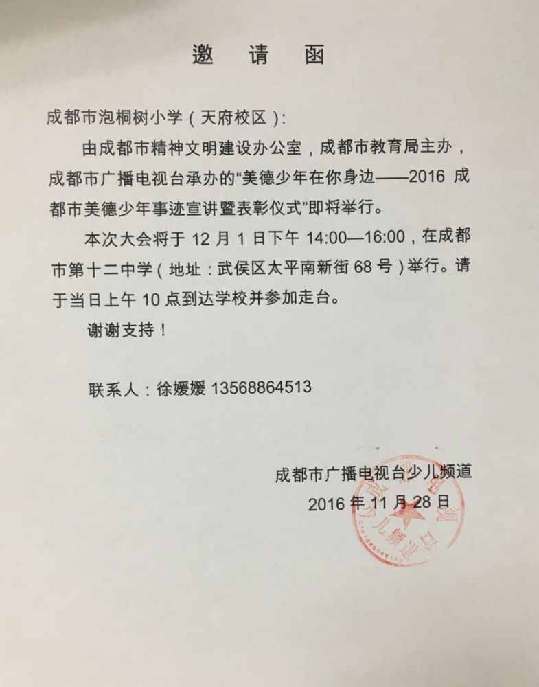 承办:成都广播电视台少儿频道、成都全搜索新闻网、武侯区文明办、武侯区教育局。