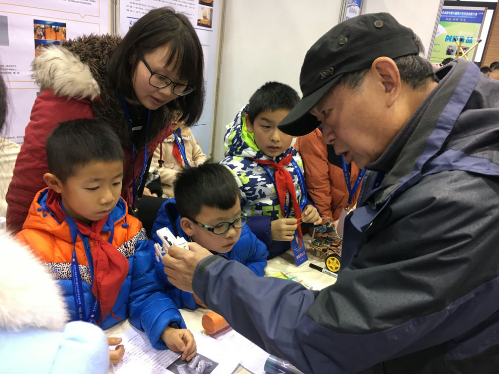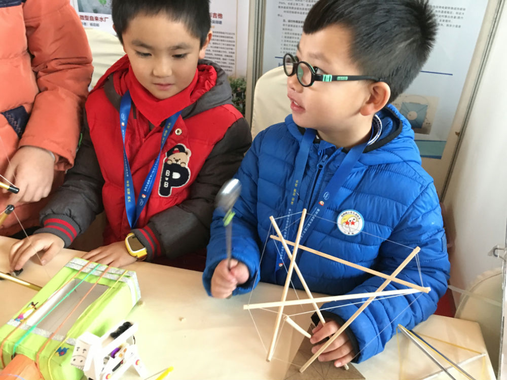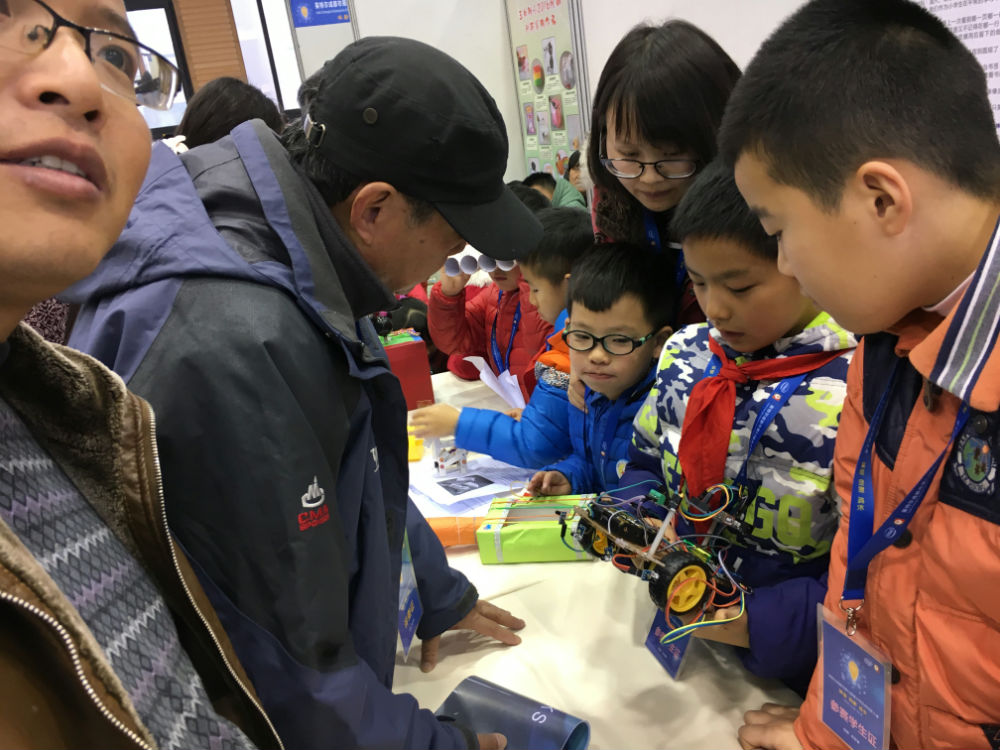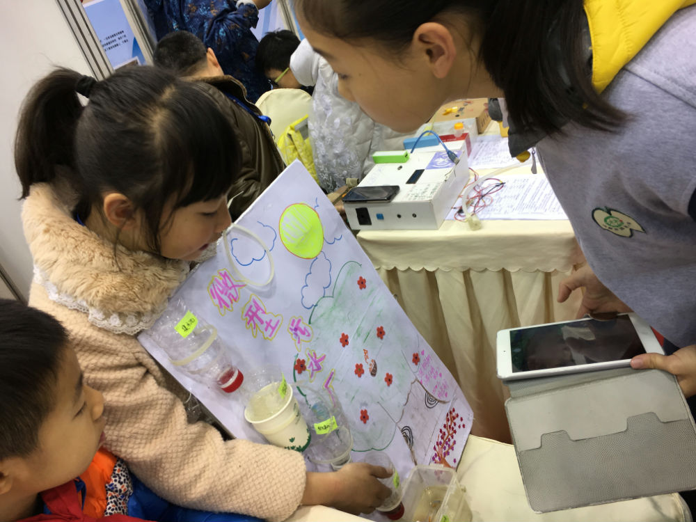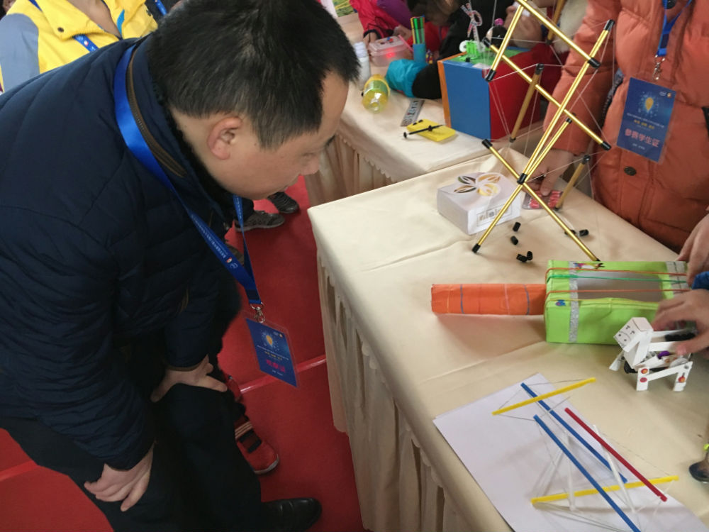 早上7点20分带队老师和学生们就从学校出发,早早的到达上东小学,再进入自己的展台后,6名学生有序的摆上自己的发明创作,并对作品进行最后调试。小泡泡们面对前来参观的老师和大哥哥大姐姐都细心讲解,从作品名称到所用材料、创新点等进行一一描述。另外,小泡泡们也会在老师的带领下去参观其他学校同学的作品,耐心学习。看到了各种各样的科创作品:磁铁扫把、多功能烧烤架、照明拖鞋、自制捕鼠器、新型茶几、诸葛弩。。。。。。。