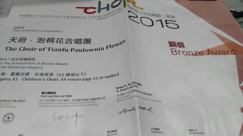 天府泡桐花合唱参加世界青少年合唱节获得表演金奖、比赛银奖