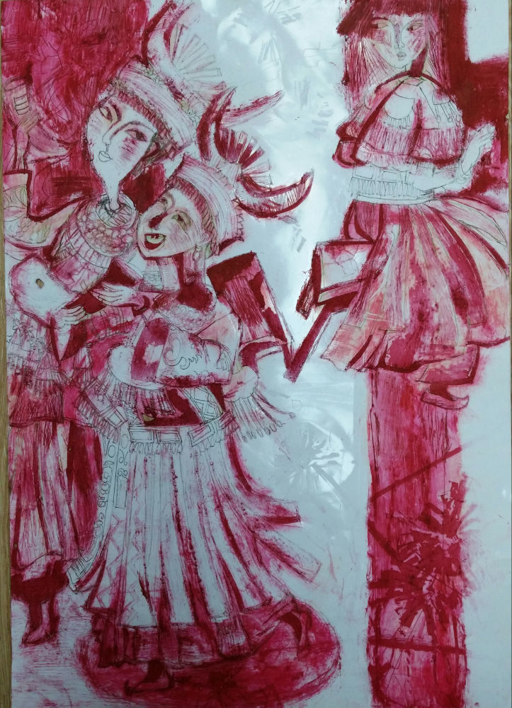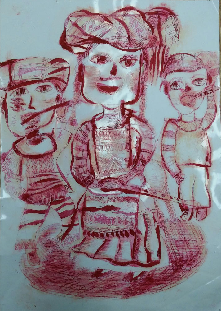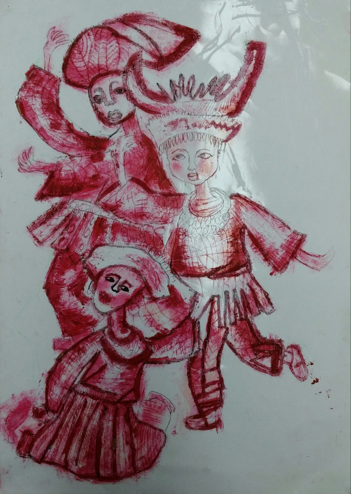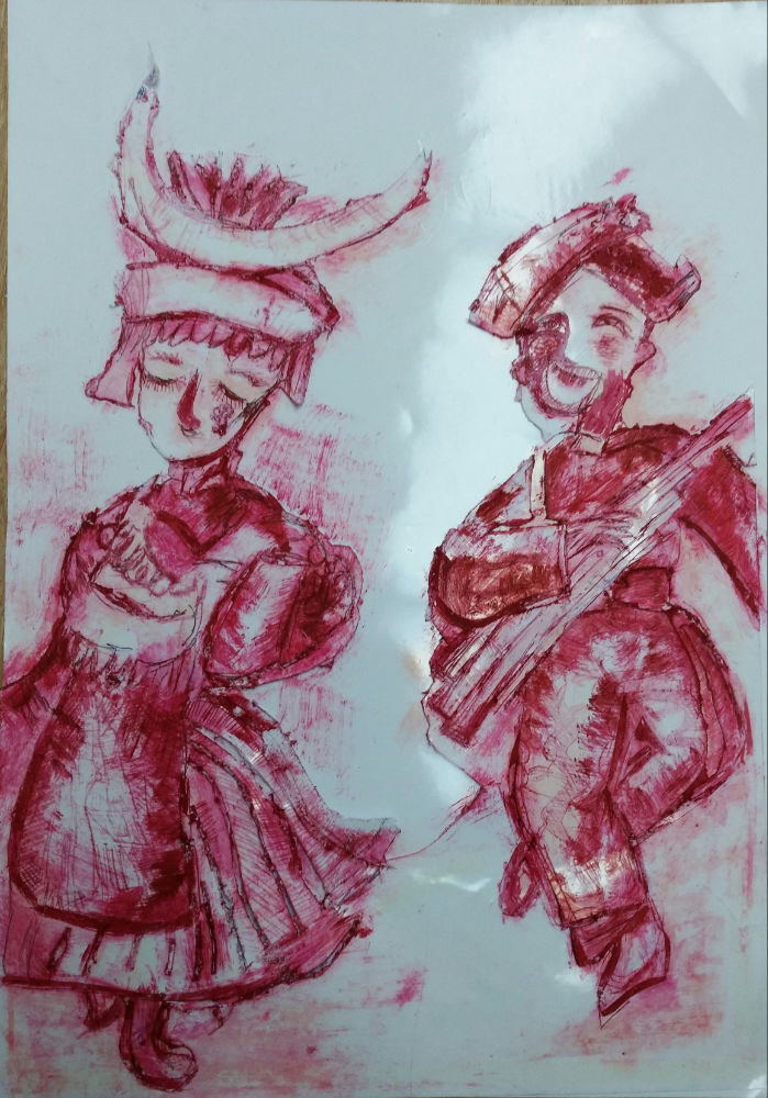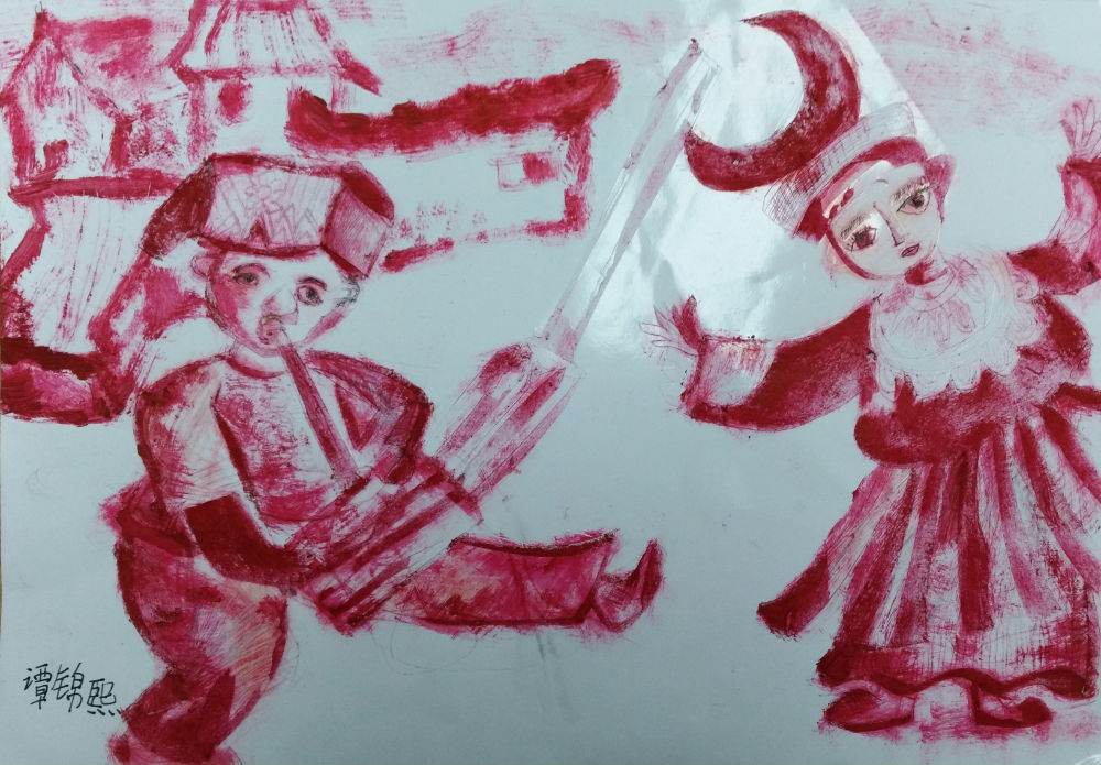 三年级黄茜老师以美术教材《面具》一课为主题,引导学生深入地了解世界面具文化,制作了一幅幅具有历史意味的剪贴纸面具版画。四年级梁老师通过收集网络资料和图片收集、了解苗族文化,用插色版画的方法创作了各种造型的苗族人物,并在课堂中分享与展示。黎老师五、六年级学生做的《版画问卷调查表》情况,制作了版画教学微视频,引导娃娃们以“成都皮影文化”为主题,利用网络资源收集关于皮影文化的书籍和材料,走进“成都博物馆”、近距离接触皮影文化的方式,让娃娃们创作出一幅幅精美的课堂版画作品。