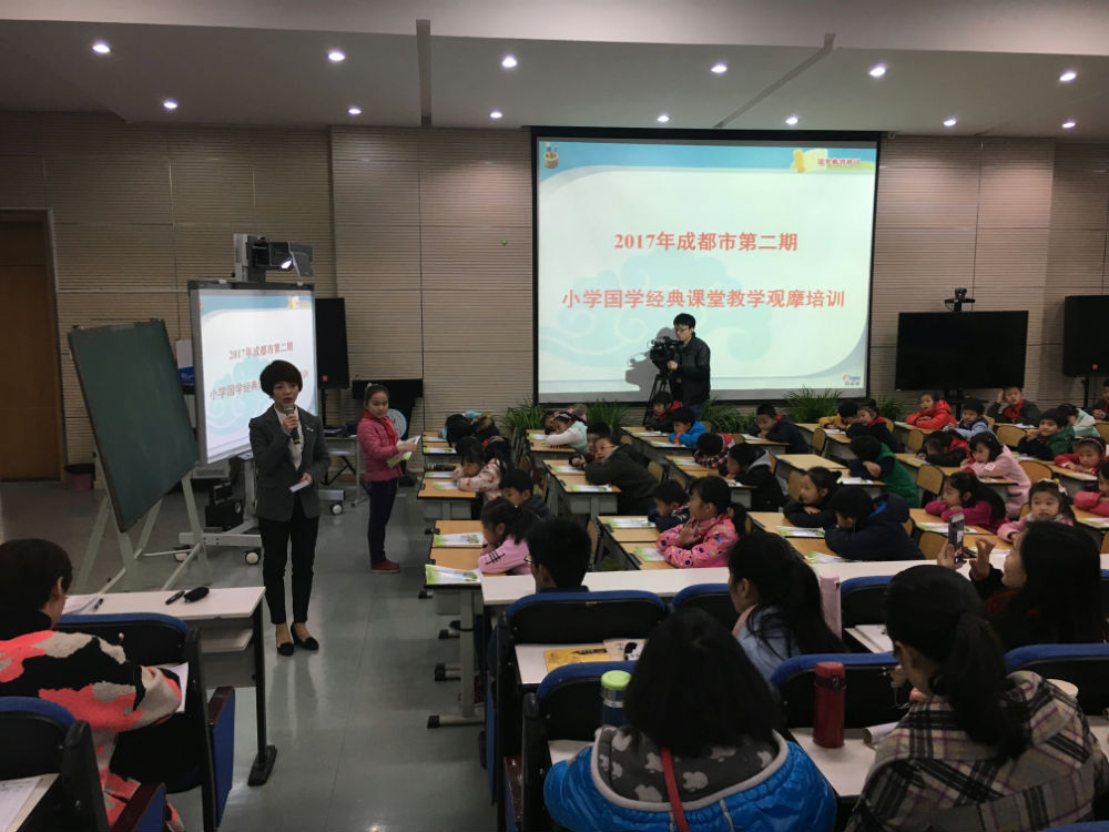 花径不曾缘客扫,蓬门今始为君开。3月10日一早成都市各区县的领导和老师齐聚在成都市泡桐树小学天府校区多功能厅,由成都市教育学会、小学语文教学专业委员会、育灵童教育研究院联合举办的“小学国学经典教育课堂教学观摩活动”正在进行。