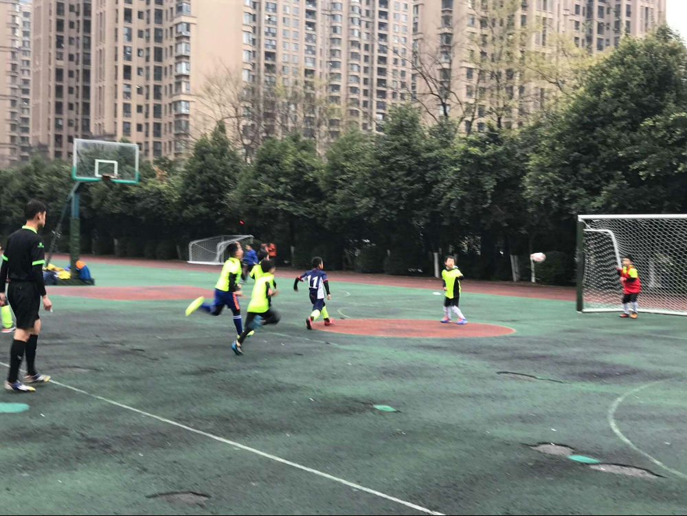 今天,虽然四周雾气蒙蒙,但是,校园足球赛依然如期拉开帷幕。