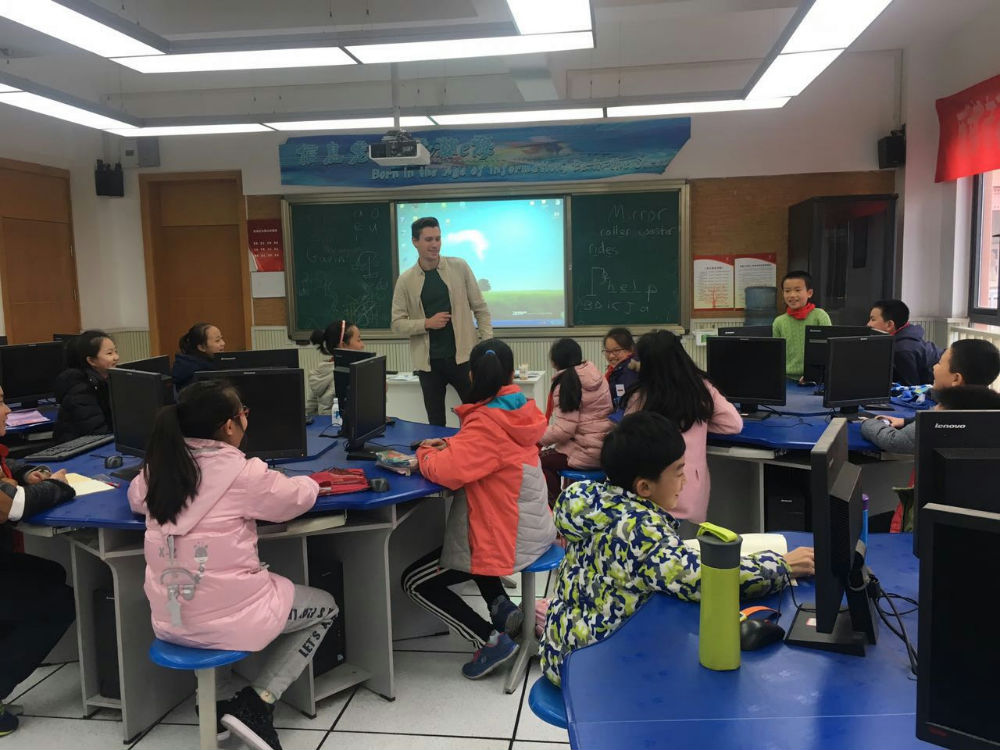 2017年3月16日,放学后的计算机教室里,在外教老师Gavin、中教老师Vicky和Amy的陪同下,泡小天府礼仪班的孩子们又聚在了一起。经过了一个月的假期,这些来自中高段不同班级的孩子们重聚在一起会有些陌生和害羞,但是在外教老师Gavin的引领下,孩子们很快开始放轻松,开心的融入课堂。