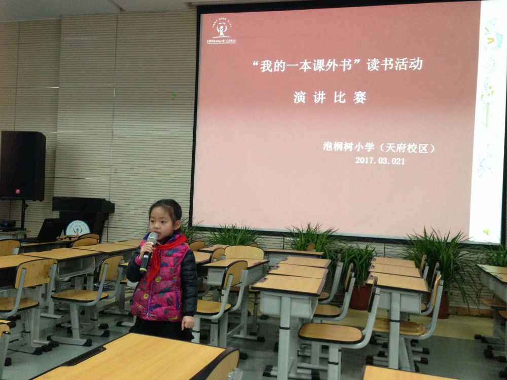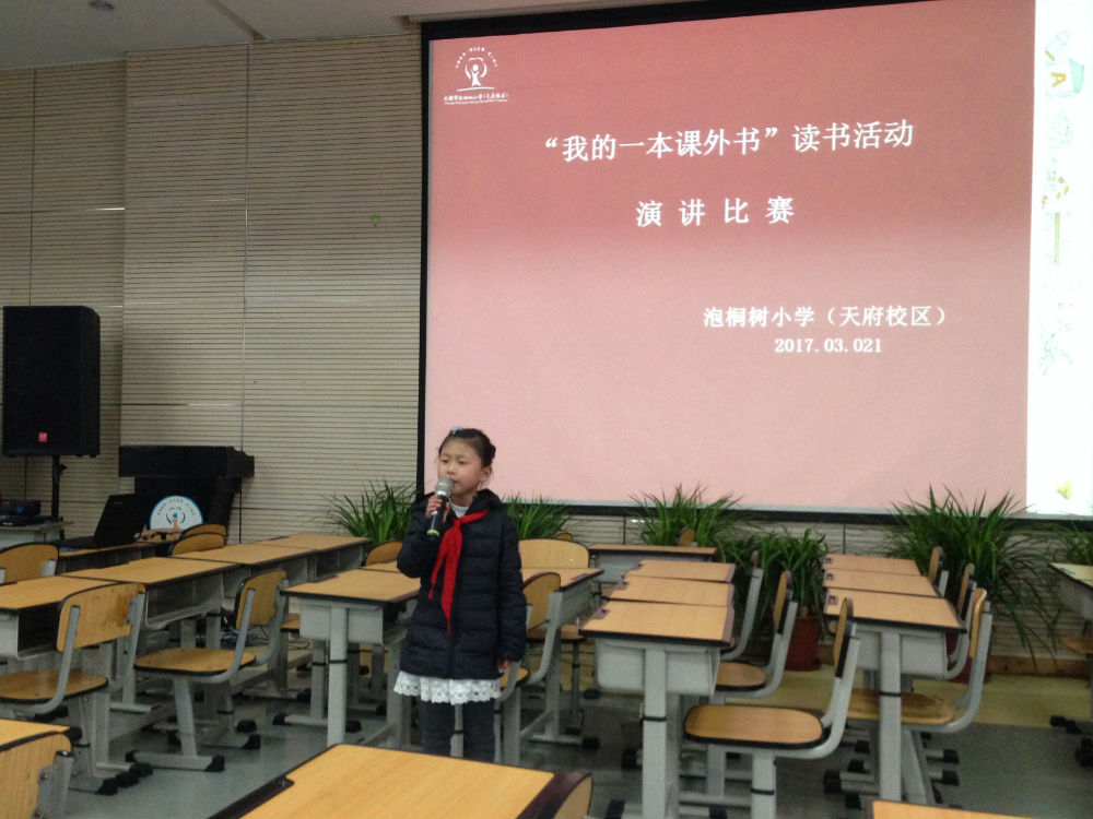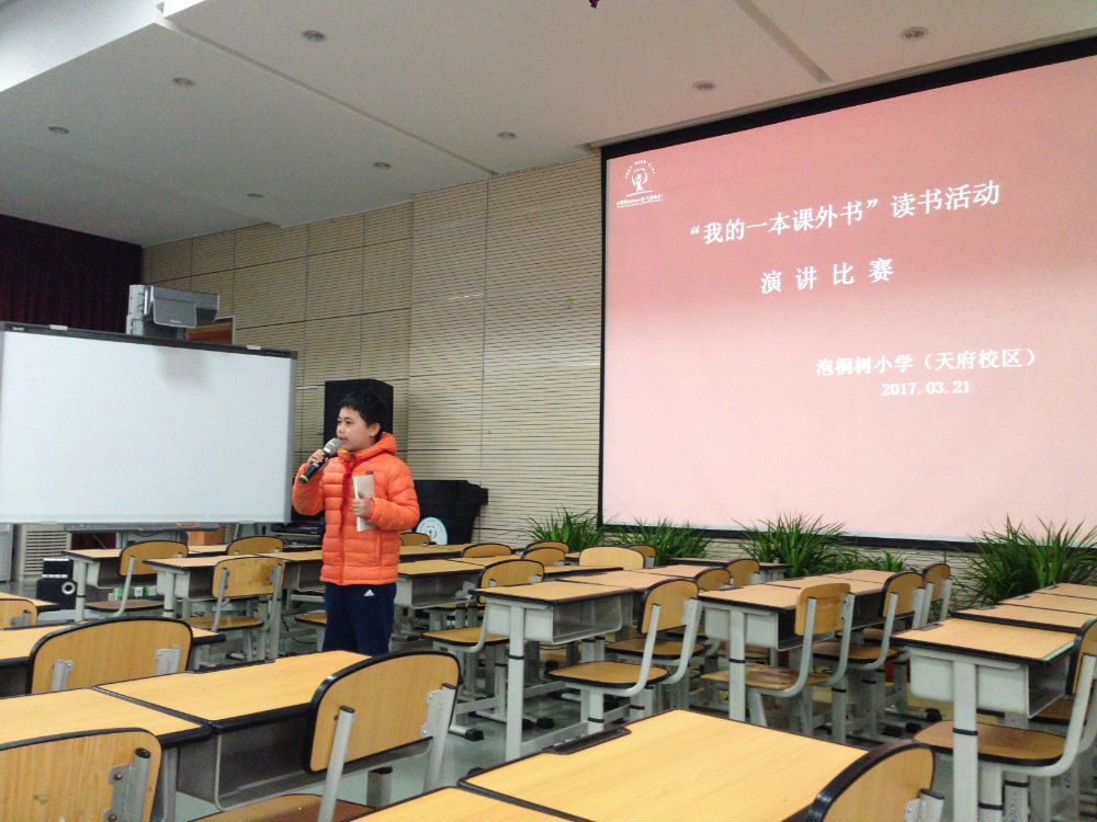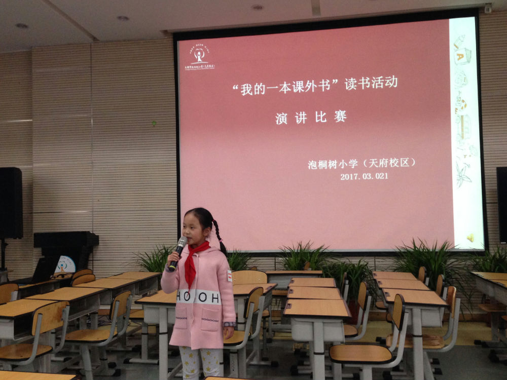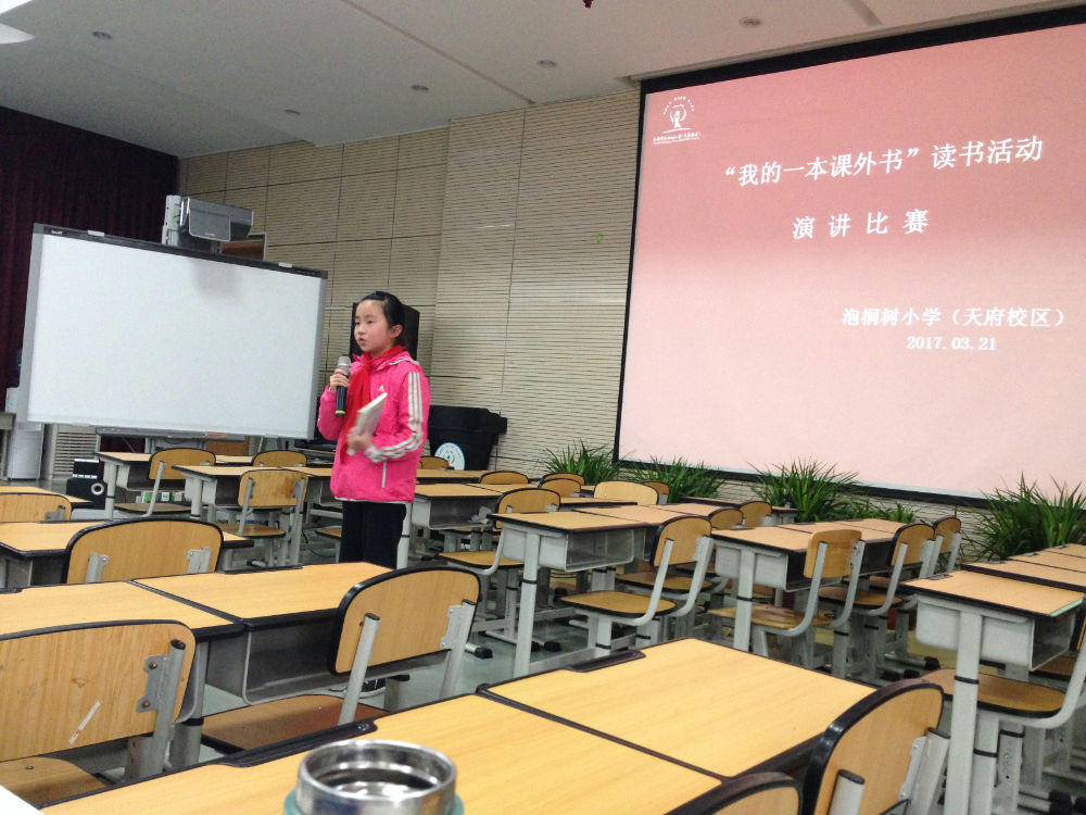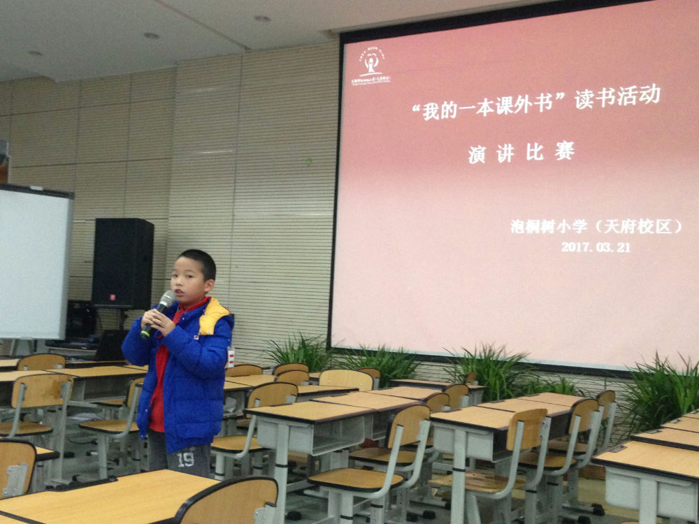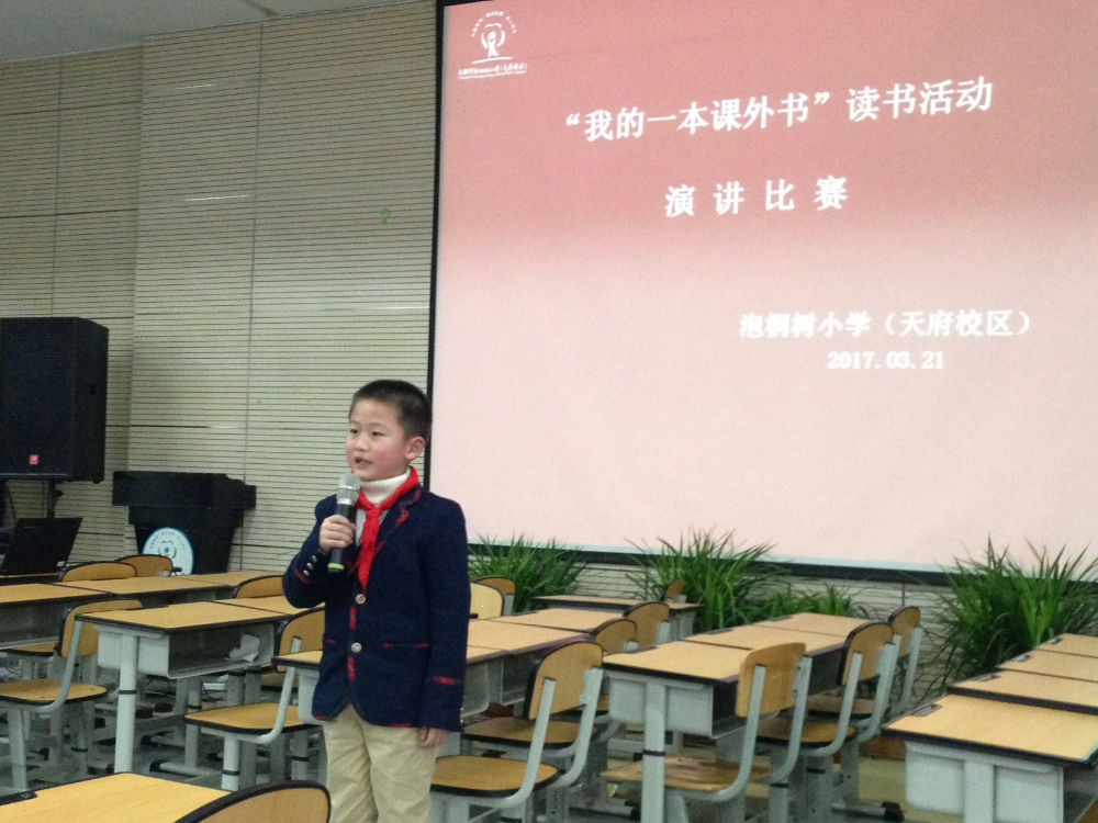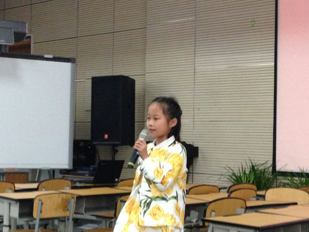 每个孩子两分钟的演讲,介绍一本课外书的主要内容和喜欢的理由。然后是评委互动交流,评委会根据学生发言和阅读书目提问对话。一年级小朋友率先登场,《三国演义》《蜡笔小黑》是他们的最爱,中高年级涉猎的书如《时代广场的蟋蟀》《窗边的小豆豆》、《活着》《唐玄宗》,古今中外,侃侃而谈。回答评委的问题更是随机应变、对答如流。可见孩子们读书的功力非同一般。