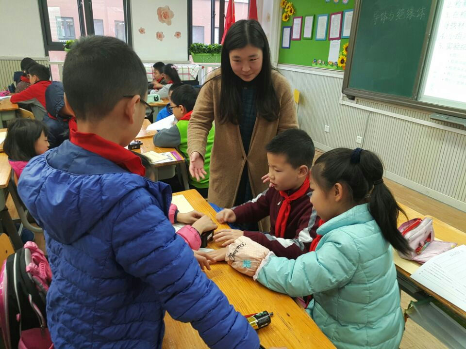姚湘宁老师的《导体与绝缘体》,巧妙又有效的复习了前序知识,又引出了本课课题,让听课教师连连称赞。姚老师带领孩子们制作了检测器,从身边的材料开始检测,看看你的铅笔橡皮是导体还是绝缘体?