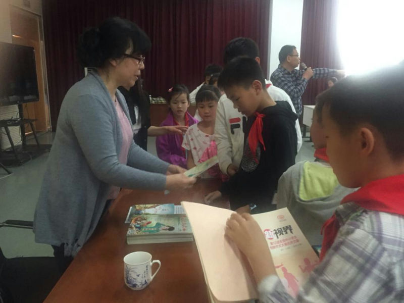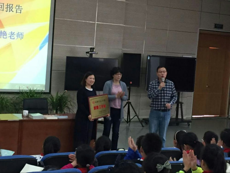 讲座结束后,中国校园文学杂志社特别授予我校为创新作文小作家校园工作站,由王慧艳老师授牌,宁超群老师接牌。
