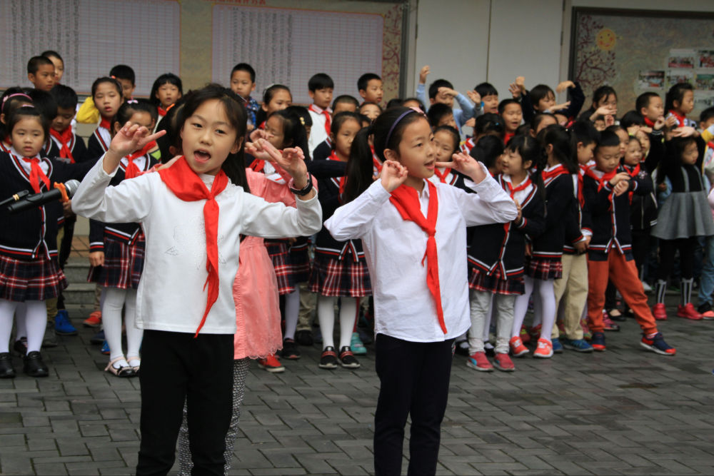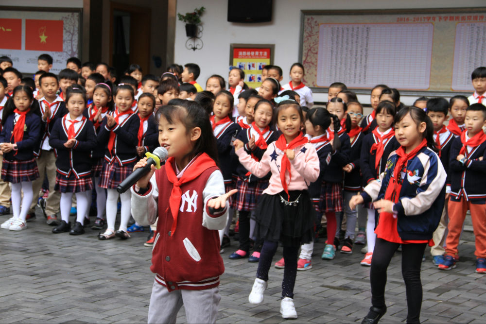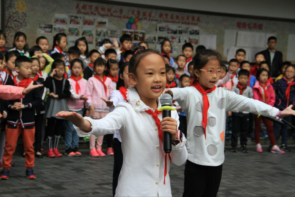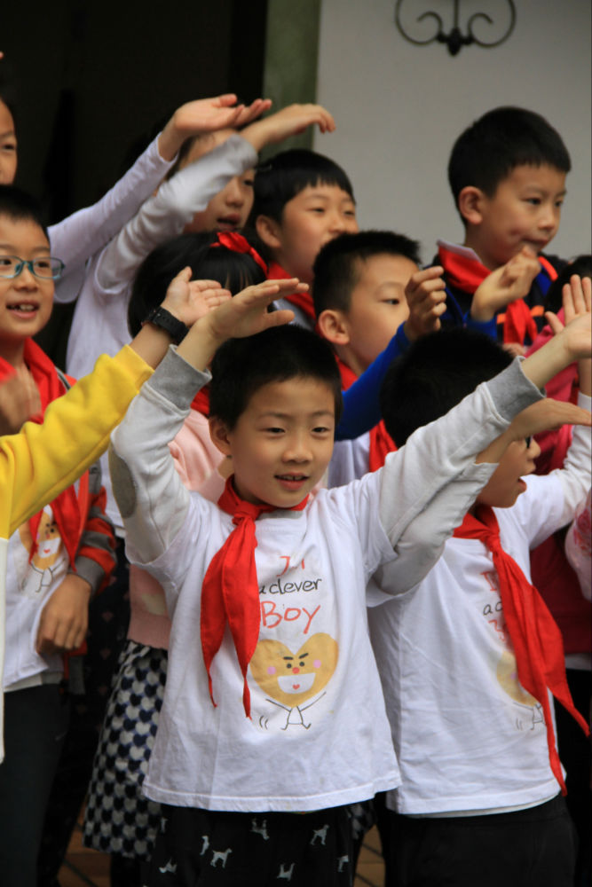 在主持人余周轩同学(4.9)的带动和音控师兰永达同学(4.3)的准备下,孩子们的show time正式开始!首先是二年级一至五班的全体同学带来的歌表演《郊游》、《草原就是我的家》。