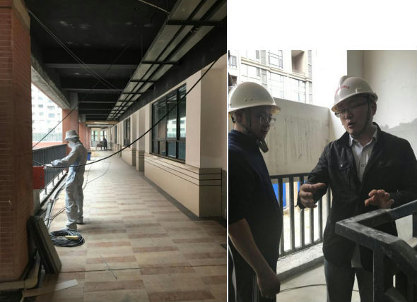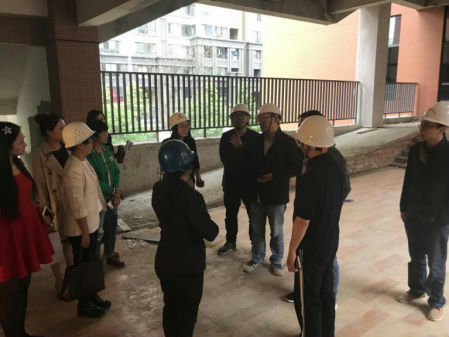 施工负责人详细介绍了施工质量情况,并耐心地对大家提出的问题一一做了解答。“特别是考虑到安全和环保问题,我们在很多方面是高于标准的”,施工负责人为此还特别邀请委员们到二楼教室样板间进行了参观。