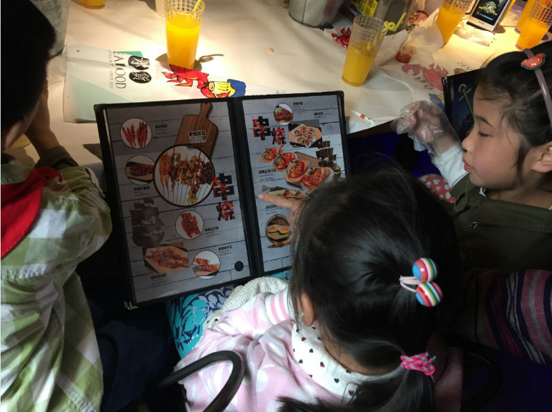 第一个答案闪亮登场!是成都市大名鼎鼎的“水货”主题餐厅哦!小泡泡们恨不得立刻插上翅膀飞了过去,好容易等到11:30集合时间,在凯丹四楼餐厅门口摆起了POSE,各种摆设立刻吸引了小泡泡们,“萌娃闹餐厅”的节奏!