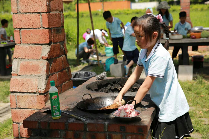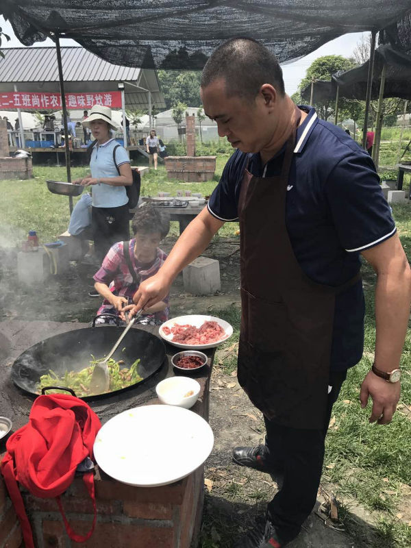 几项热身体验项目后,就要进入今天的重要环节:“家人协作,野炊厨神大比拼”了!小泡泡们背着小背篓去摘取新鲜的蔬菜。很多菜菜大家平时只有在餐桌上看到,今天变身小农夫、小厨师,自己动手、自己采摘、自己切菜,既新奇又有意义!小泡泡们用辛勤的劳动,和爸爸妈妈们一起齐心协力,才能做出最美味的菜肴!