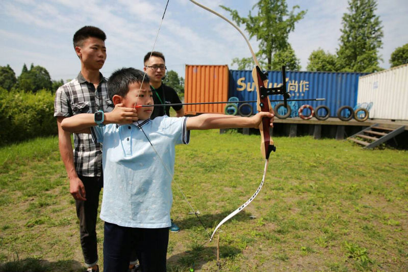 在农场,还有一个挑战自我的项目,那就是户外射箭。射箭不仅对力量,精准度都有很高的要求,还能锻炼同学们的胆量,提高挑战高难度的决心,小泡泡们都纷纷踊跃去尝试。