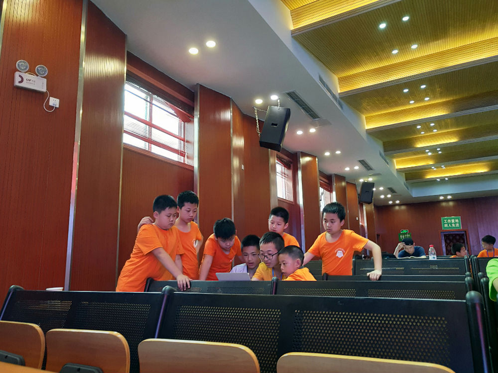 第二天一早,老师和队员们早早吃了早饭,然后报道入场。比赛场地的楼道里排起了长龙,队员们一个个拎着沉重的器材箱,却毫不抱怨。老师都为孩子们的坚持点赞。