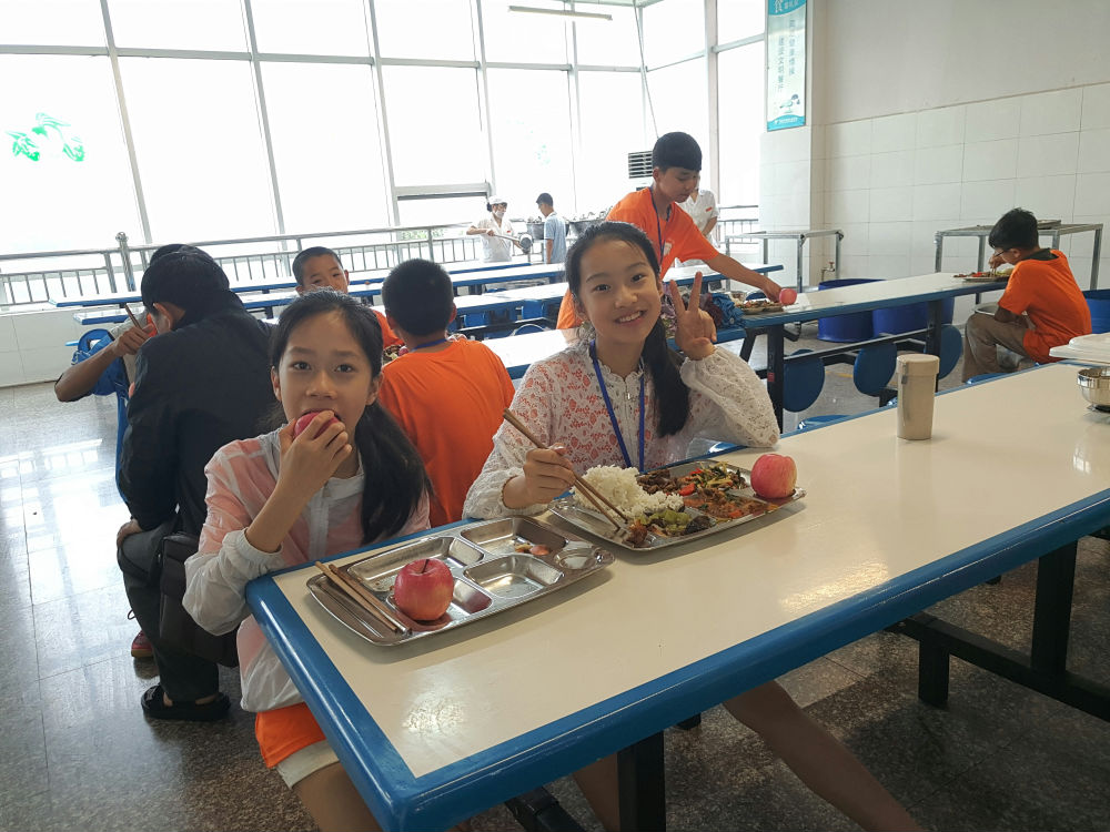 在带队老师的帮助下,队员们很快做好了领服装、确认宿舍、确认比赛场地等等工作。傍晚,老师和队员们在绵外实校的食堂享受了东道主精心准备的晚餐,回到宿舍休息。到了新环境的队员们难免兴奋,男孩子们更是兴致高涨,到操场踢了一场酣畅淋漓的抢球大赛。