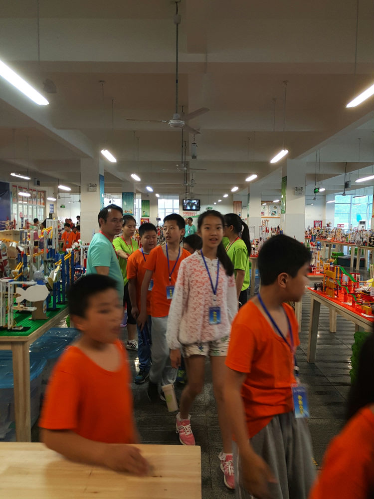 经过漫长的排队,队员们终于进入了比赛场地,检录后入场。八点三十分钟,裁判一声令下,比赛正式开始,孩子们开始了热火朝天的搭建工作。