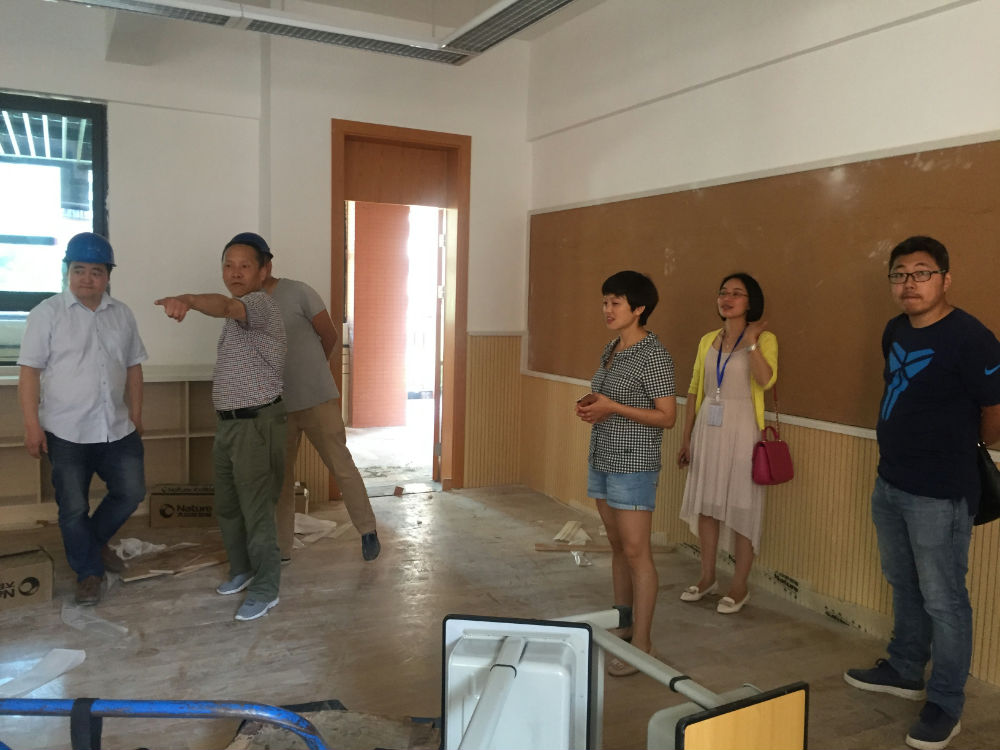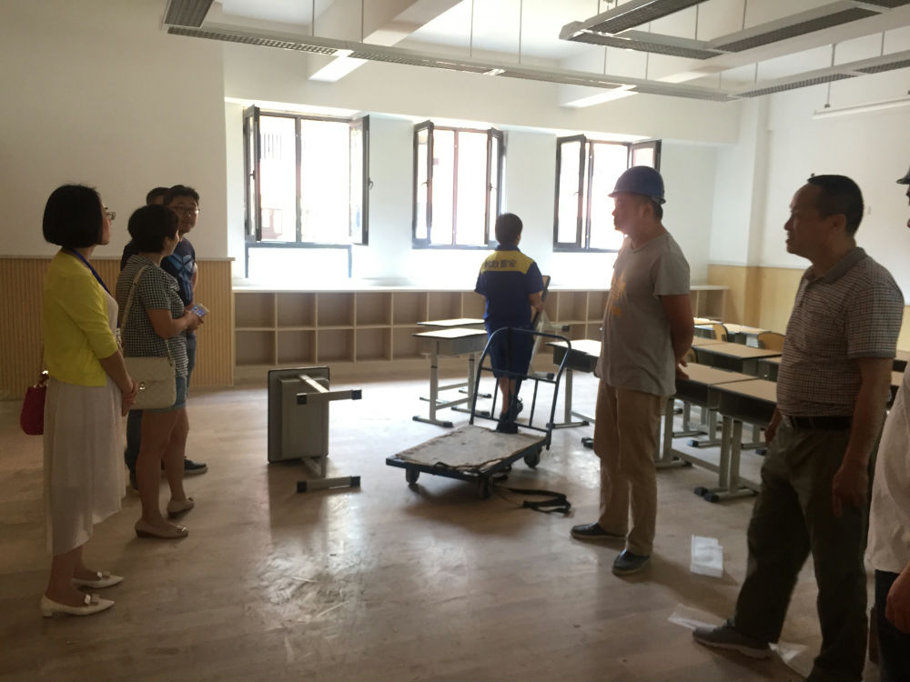 2017年5月26日上午起,校家委会代表与我校服务中心、学生家长发展中心一同前往学校二期扩建工程关心桌椅与多媒体设备进入新教室情况。经过实地勘察,多媒体设备与从学校生活体验中心和蒙小空教室搬往新教室的旧桌椅已安装就位。从四月份开始,新教室的窗户将一直敞开,保持良好的通风。随后我校将陆续在新教室内摆放绿色植物,清理公共区域残留物渣。