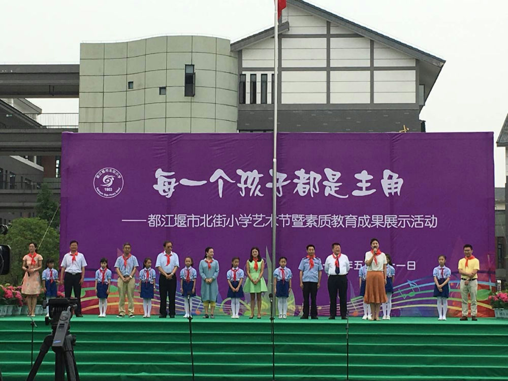 2017年5月31日,我校受对口支援学校都江堰市北街小学实验外国语学校之邀,来到聚山水灵秀的天府源头都江堰市,参与了北街小学“每一个孩子都是主角”的艺术节暨素质教育成果展示活动,感受到北街小学孩子有序活泼的风貌。