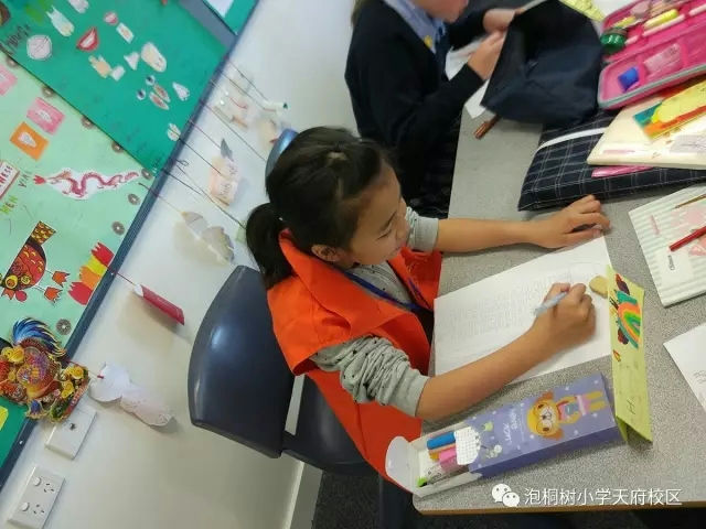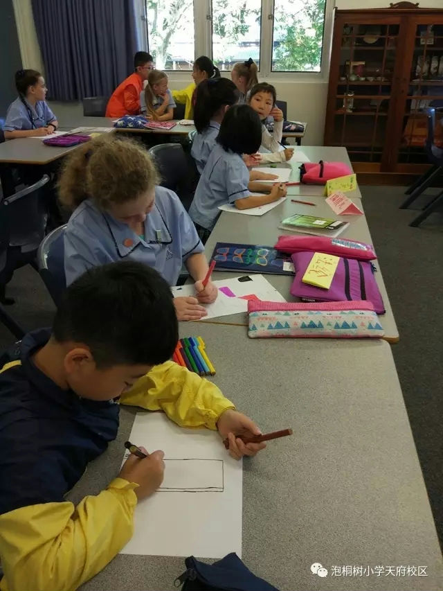 老师们与伊普斯维奇文法学校负责课程设计的老师Mrs Lezah Semple进行了交流。Mrs LezahSemple列举了二年级的英语教学和我们分享,并提供了她们的教学实施、评价项目资料供我们学习。紧接着,老师们随机走进了一堂中文课,教室里有很多中国元素的装饰品,为学生营造了学习中文的氛围。我们了解到一周开设有两节中文课,训练学生的听、说、读、写,本学期的学习主题是“家”。我们的孩子们正在画自己的家。