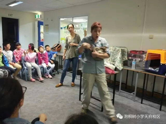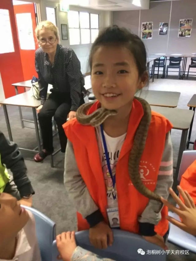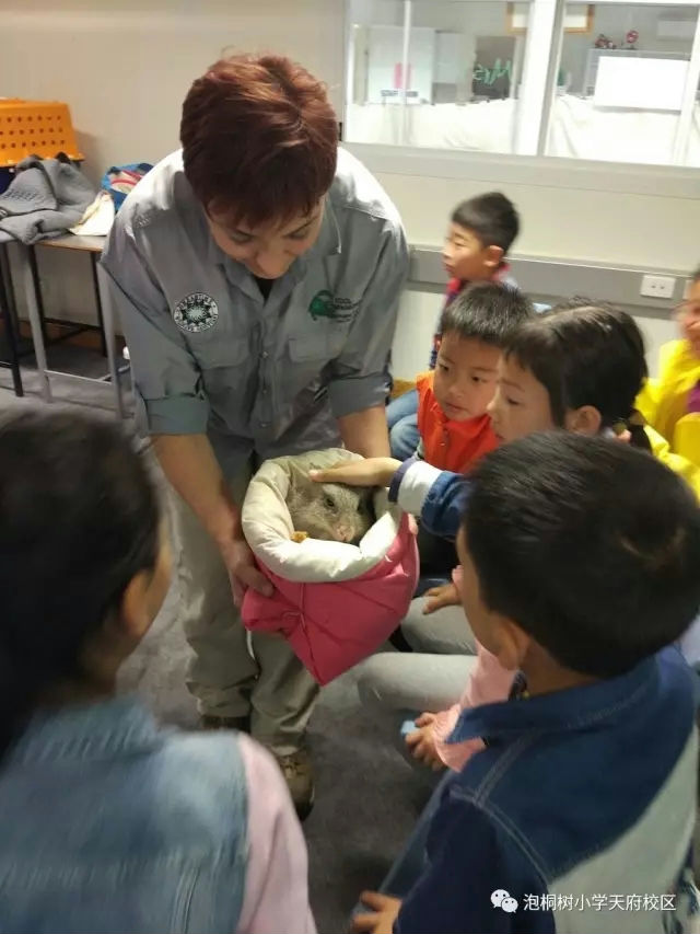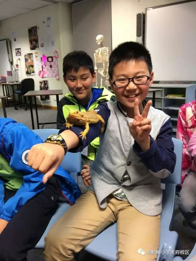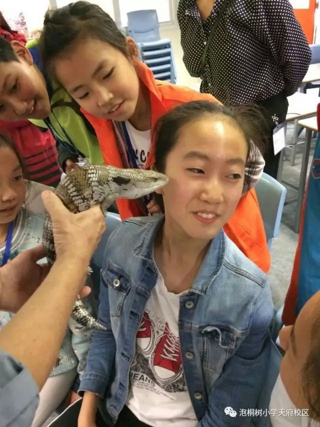 英语课堂后,孩子们走进动物的课堂,在听老师介绍的同时可以近距离观察动物们。