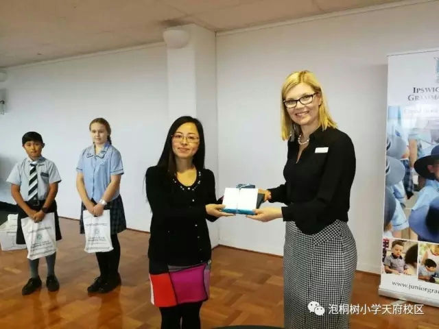 下午大家参加了结业典礼,Ipswich Grammar School小学部的校长Mrs Nicholee Eiby向学生致辞,颁发结业证书,赠送小礼品,同时也代表学校向我校赠送了礼物,廖敏主任代表我校表示感谢,欢迎澳大利亚的孩子来成都来交流,最后孩子们合唱了《成都》表示感谢!