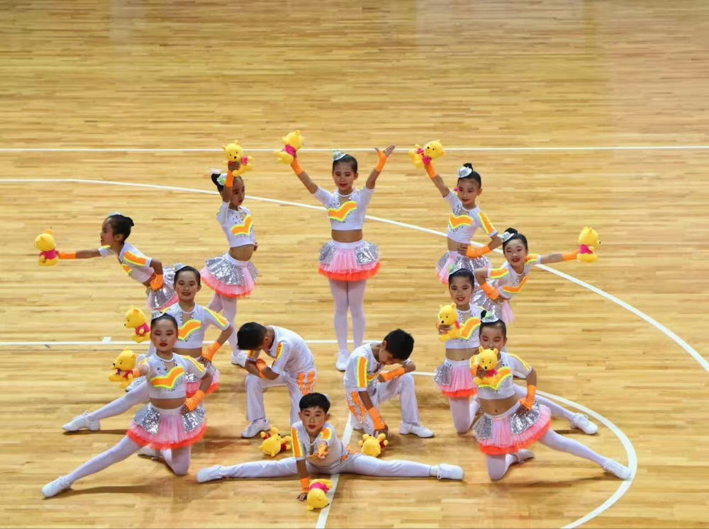 跳动的音乐,闪亮的服装、飞扬的舞姿和一张张阳光自信的笑颜,整个赛场都因我们而精彩!