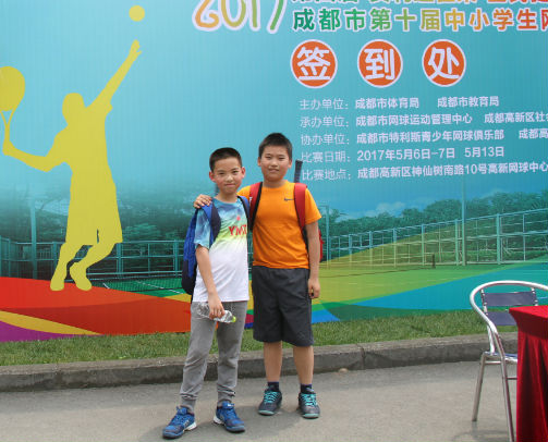 三年级阳光男孩郑与程和沉稳腼腆男孩张迦尧是小A男团单打的种子选手,击球利落帅气,稳打稳扎、步步紧逼对手; 团体男双“魂斗罗”组合:三年级的罗俊昊和四年级的罗杰是从小一起打球的好兄弟,两人在比赛中互相鼓励,配合完美、罗杰负责网前截击,罗俊昊负责底线防守反击,优势互补。最终,团体队伍每场比赛以3:0的决胜战绩挺进四强。 “魂斗罗”组合罗俊昊、罗杰还获得了成都市中小学网球锦标赛个人男双项目的季军。他们不仅仅打出了水平,也打出了友谊和精神。