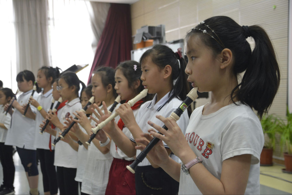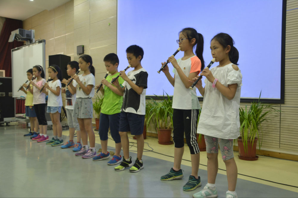 本次活动分为“测试篇”、“个性展示篇”和“ 校特长队展示”三部分。“测试篇”展示板块每位学生均上台进行两首竖笛联奏,一首歌曲演唱,选曲范围为音乐课堂所学,展示完毕由家长代表、学生代表、教师代表组成的评委组举牌打分,当场宣布成绩。