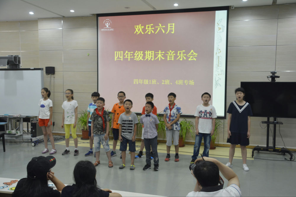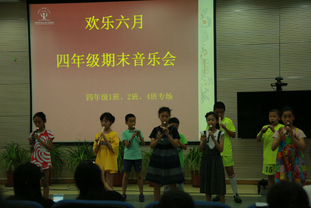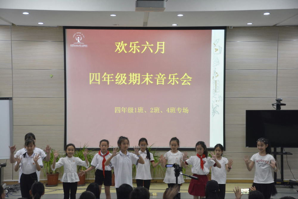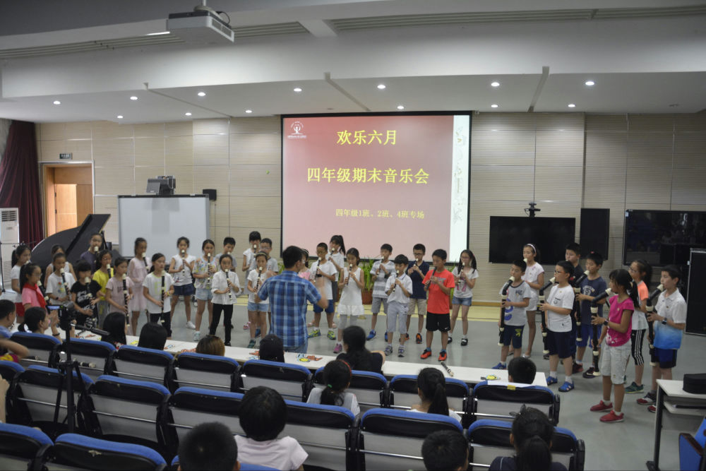 为给每一个孩子上台展示和被审美的机会,培养学生参加音乐会的礼仪常规,同时检验课堂教学成果,6月9日,四年级1.2.4班由各班家委会主席、班主任、音乐老师策划组织的“欢乐六月•四年级期末音乐会”在我校阶梯教室顺利举办。四年级1.2.4班全体学生、各班班主任、音乐老师及家委会志愿者共计270余人参加了此次音乐会,现场氛围十分热烈。