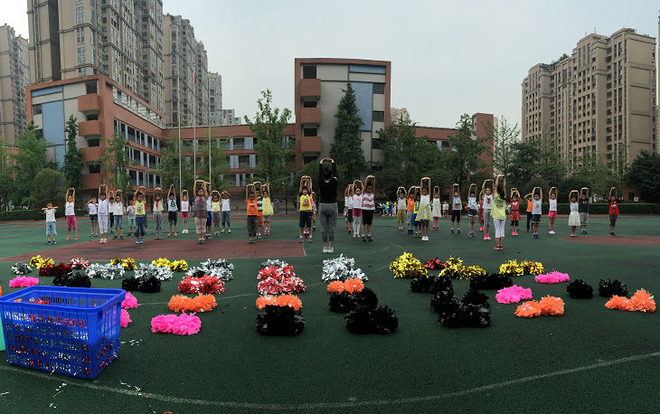 张燕妮老师指导孩子们如何让一枚小小毽球在脚下栩栩如生。