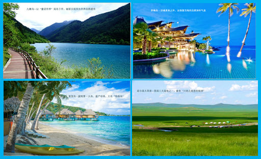 在简单介绍了旅行社的叔叔阿姨丰富的业余生活之后张爸爸还介绍了好多美丽的国内外旅游圣地,国内的有神奇的九寨,一望无际的若尔盖草原,干净纯粹的稻城亚丁。国外的有盛产珍珠的越南富国岛,被誉为东方马尔代夫的芽庄,自然纯朴的苏梅岛等等。