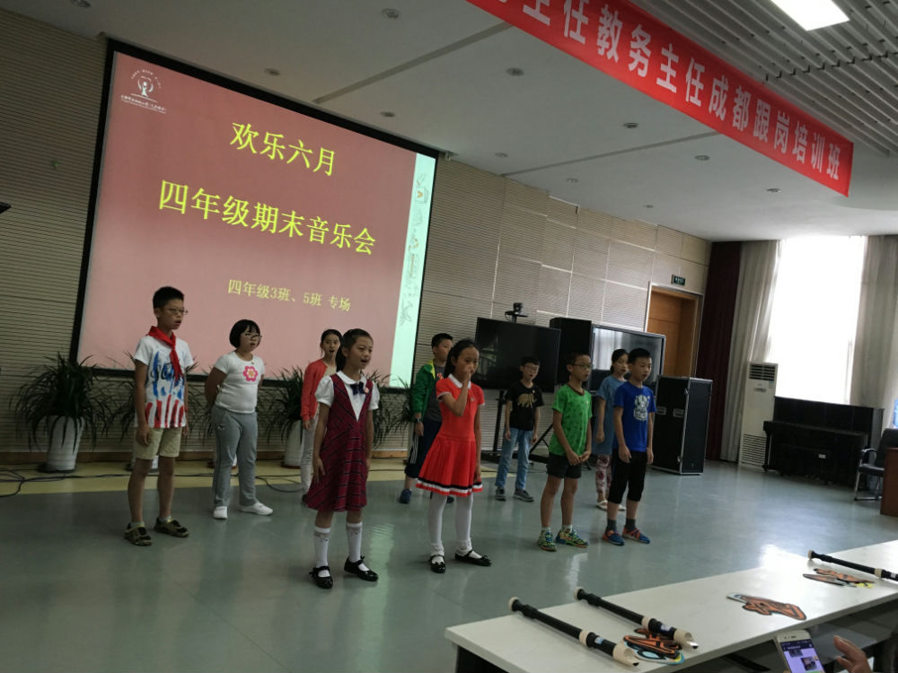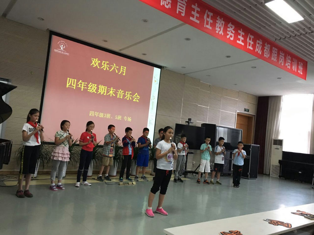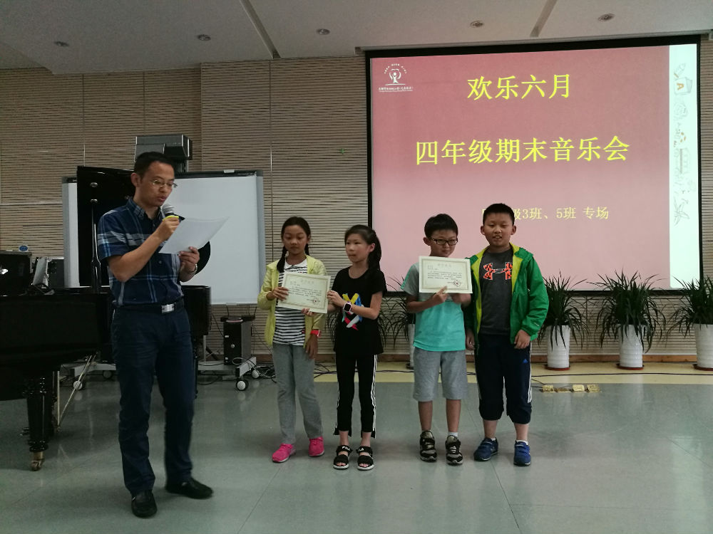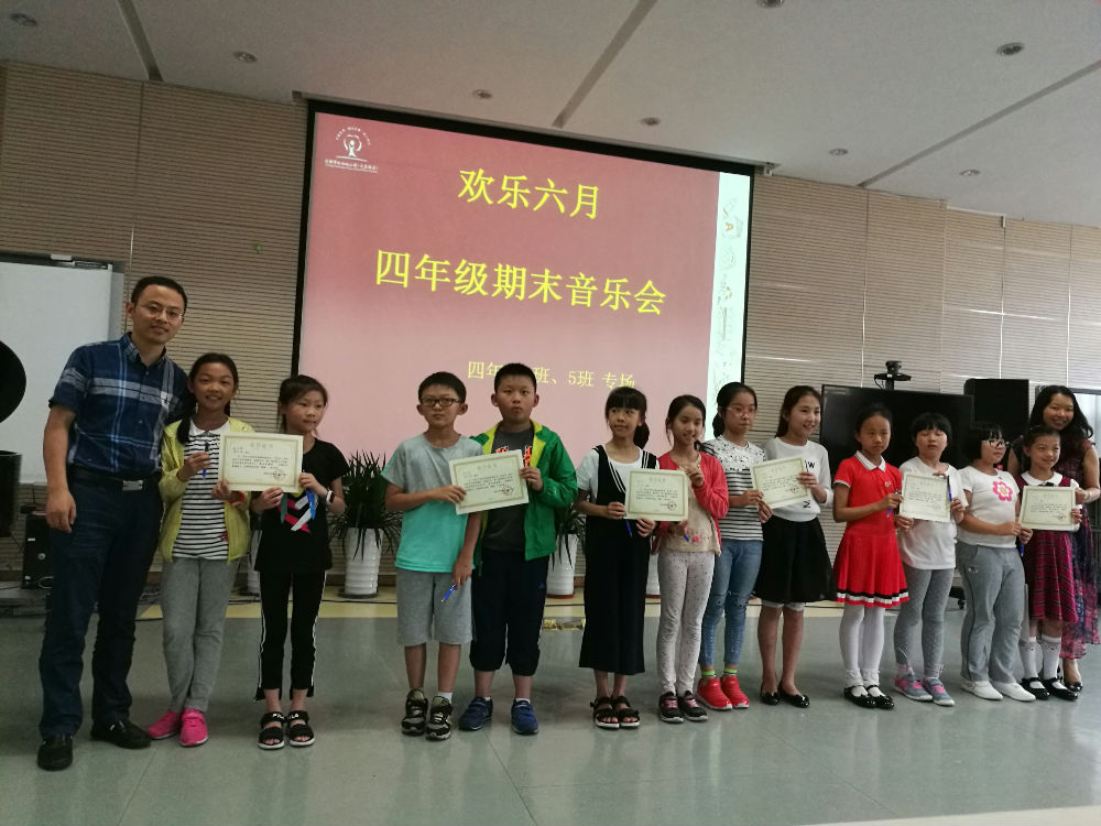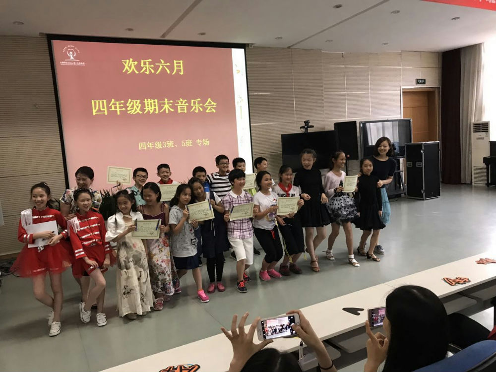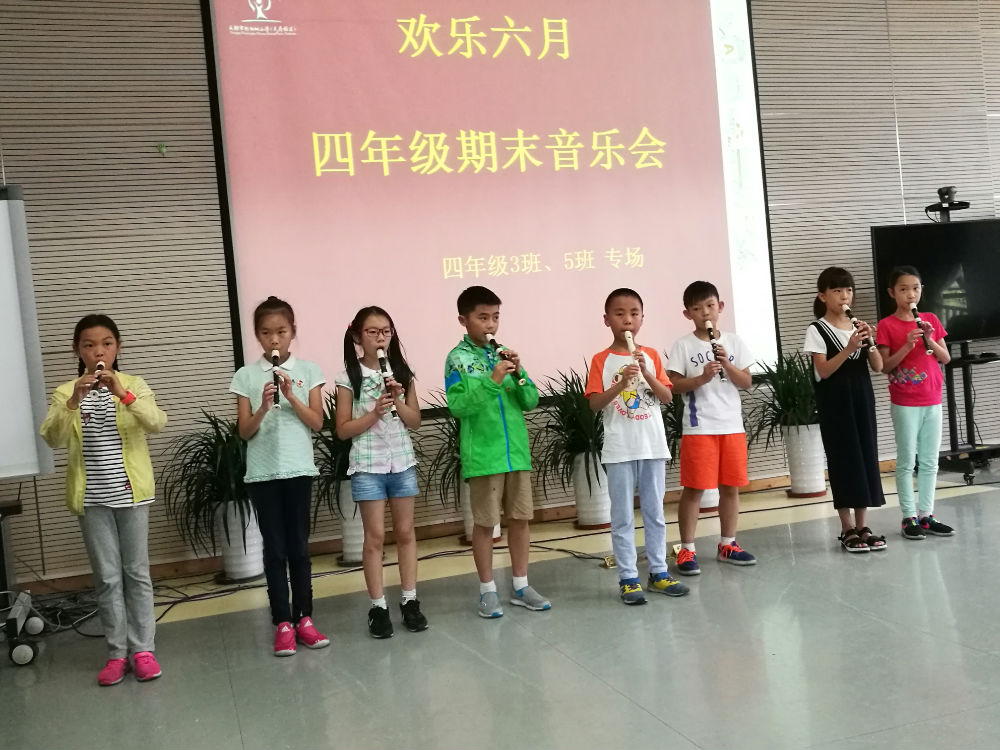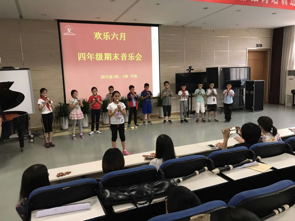 今年的音乐考试别具一格,音乐老师在各班班主任和任课老师大力支持下以期末音乐会的形式进行音乐课的期末考试。音乐会分两大部分,一是集体展示。主要是课堂学习内容,每个人都将上台,两首竖笛联奏,一首歌曲演唱。二是个性组合展示。音乐属于每个人,每个泡泡都有上台展示的机会,泡泡们自主排练,热情高涨。考试成绩也是由家长、学生及老师组成的评委组来打分。新颖、生动、独具匠心。