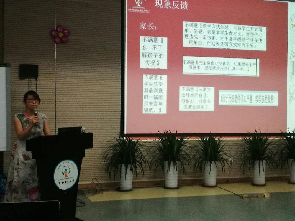 首先,欧主任以现场问答的方式询问老师们:如何看待师德测评?有的老师说很担忧,害怕家长不认可自己;有的老师说很赞同进行师德测评,并希望学校能把师德测评的结果反馈给老师,并在以后的师德测评中实行匿名测评,这样的结果会更有说服性。接着,欧主任就学生和家长的“不满意”做了一个统计。学生谈及以下问题很不满意:打人、重女轻男、老师长期不上课、上课玩手机等;家长反面:老师不尊重家长、体罚、教学能力差等。欧主任再三强调,教师一定要有自己的底线,切记,不可违背自己的底线。空余时间,一定要自我修炼,无论是专业方面还是对待家长和学生的方式方法方面。最后,宋茜副校长提出了希望,她希望老师们一定重视师德师风,高标准要求自己。