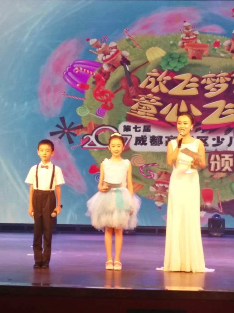 2017年7月25日晚上,在成都市妇女儿童中心热闹非凡,今天在这里举行了第七届成都高新区少儿才艺大赛颁奖晚会,据主持人介绍:此次比赛较以往届比赛是参赛人数最多,节目质量最高的一届,有1000多名学生500多个节目参与了比赛,比赛分声乐、器乐、舞蹈、语言等,经过激烈的角逐,我校的小泡泡们在各个比赛项目中都有获得一二三等奖的好成绩,其中我校黄思锴、韩乐淘担任了本场晚会的主持人,我校幽兰古筝社的《青花瓷》为本场演出做了如梦如幻的开场秀,歌表演社团的《金龟子的畅想》、余诗云的《梦的航线》还应颁奖组委会的邀请作为获奖代表作品参加了此次颁奖晚会的演出,精彩的表演得了到会领导和大小观众朋友们的极大好评。通过此次大赛让我们更多学习艺术的孩子得到了很好的展示和锻炼机会,也让孩子们明白了在学习的道路上要有辛勤的耕耘才会有丰硕的收获。在此感谢大赛组委会为孩子们提供的展示舞台,感谢所有为本次比赛付出辛勤劳动的老师们和默默在背后支持的家长们!