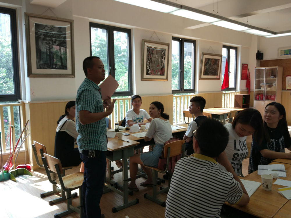 2017年8月16日下午两点,成都市泡桐树小学(天府校区)2017年新教师培训会在五二班教室继续进行。学生发展中心的曹娟主任首先对学校的德育目标与德育课程做了系统而全面的介绍,其后,教师发展中心的欧小丽主任简要介绍了学校的管理体系,并带领大家继续进行上午的破冰之旅活动。