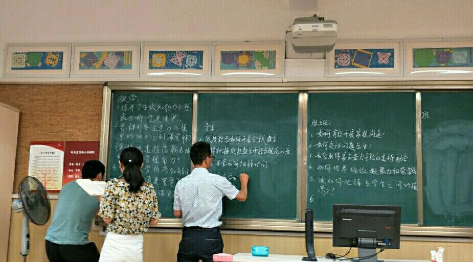 2017年8月18日上午,赵婷婷、周欢、潘碧玉、王俊璐、殷铭、唐奎、郭永洁、蒲彩萍八位新教师在郝礼婷老师的带领下,在二年级四班的教室对两天来的学习心得进行了一个交流分享,郝礼婷老师同时也对几位老师在新教师培训中产生的疑惑和不解进行了解答。