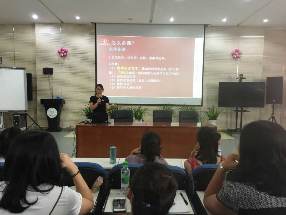 紧接,学校服务中心赵靖老师对教师办公室及近期工作生活做了细致地安排。教师发展中心欧小丽主任以《我们如何备课》为题给大家做了交流,端正教育教学工作态度,树立良好的师德师风。老师们对于今年泡天备课形式的改革给予认同,一致认为只有减少细枝末节,才能高效工作。