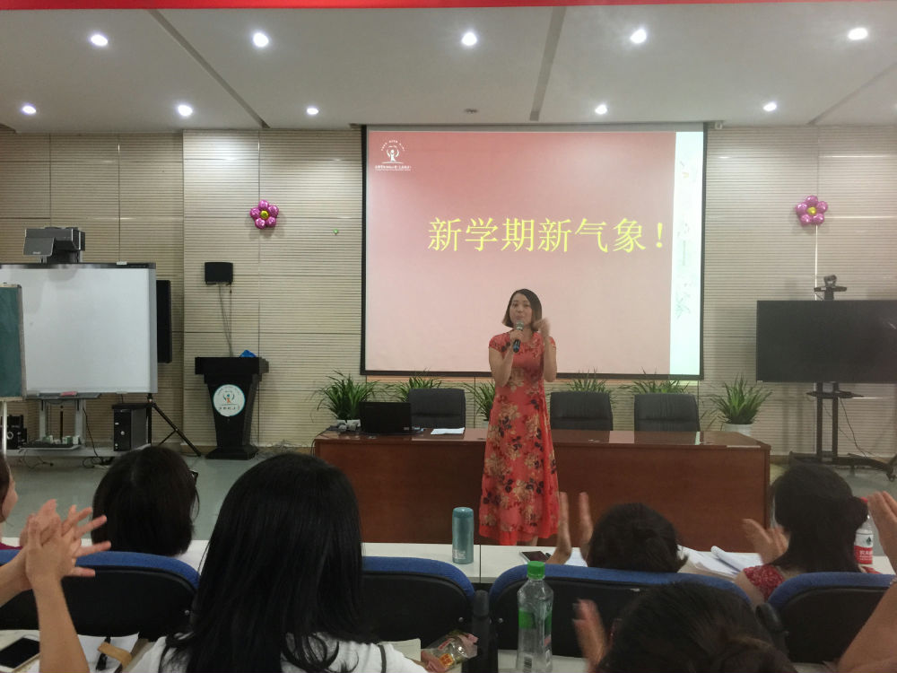 开会啦!三十多位满怀教育理想的新教师一一做了简短的交流,让我们很快熟悉这些新面孔。交流结束后,廖敏主任宣布了新学年的人事安排,让大家熟知自己团队的成员,以便携手并肩前行。