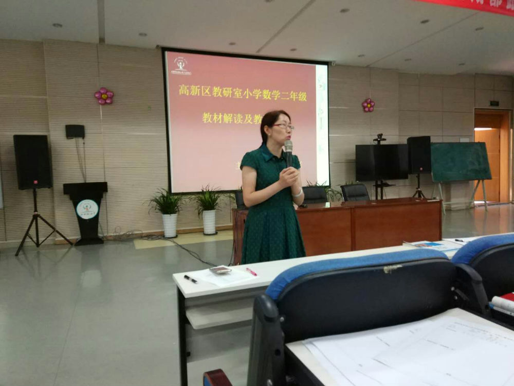 成都市高新区二年级上册数学教材解读会议于2017年9月13日下午在泡小天府多功能阶梯教室顺利进行,高新区二年级数学教师参加了此次会议,在区教研员游琼英老师的带领下,唐治国、欧小丽、李亮三位老师为大家深入解读了本册教材。