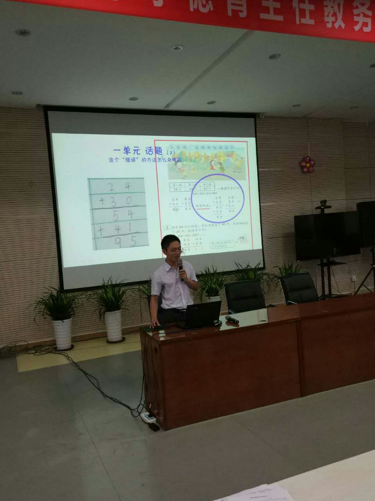 首先唐治国老师首先对整册教材进行教材解读,教材以情景+问题串的方式进行编排,强调从头到尾思考问题。并分享了三点教学启示:第一、我们教什么;第二、各种教材版本的比较分析,如两步计算的竖式写法的不同进行讨论;第三、小组内分享和全班分享并重。在唐老师的带动下,有很多老师将自己教学的心得和疑问提出来,进行了热烈有效的讨论。接下来,唐老师以幽默的语言对教材第一、二、四、六单元进行解读。