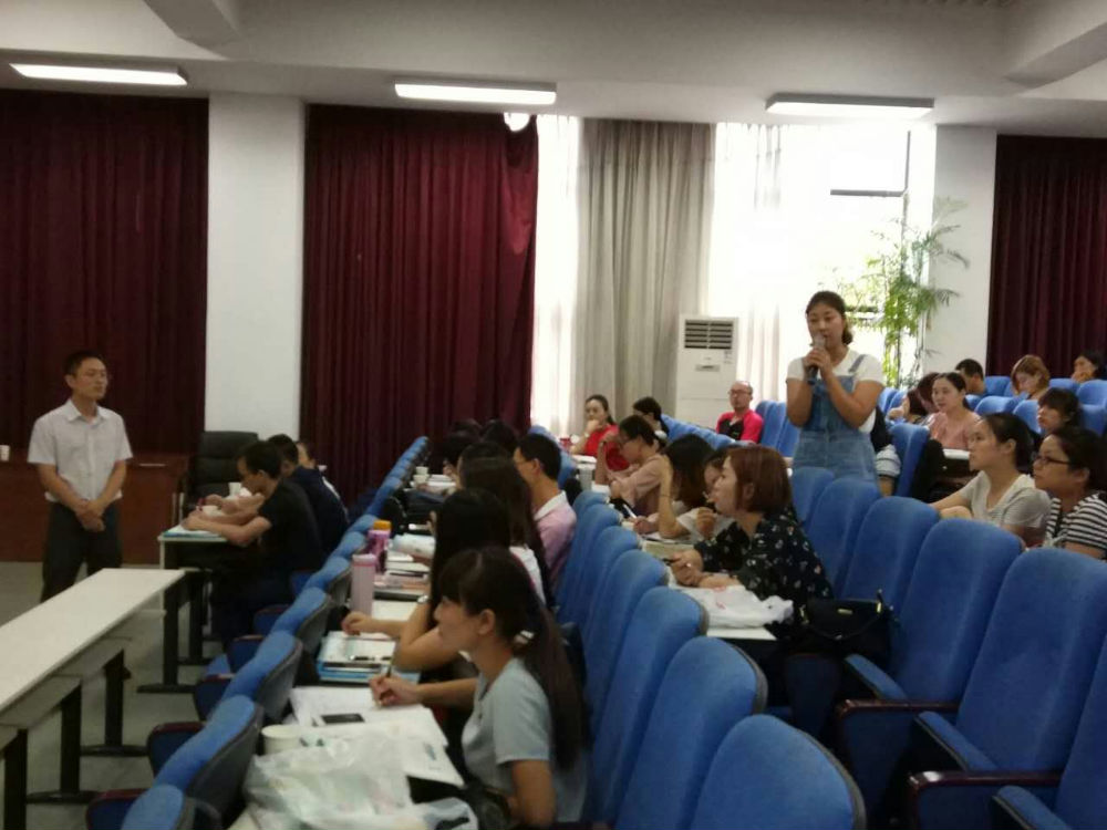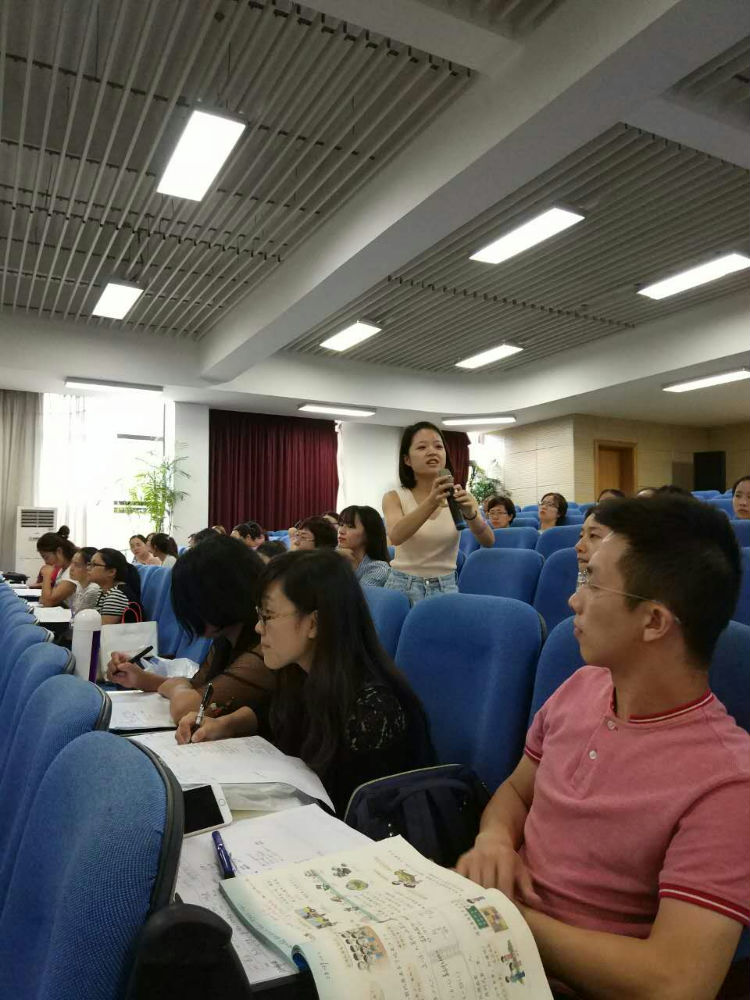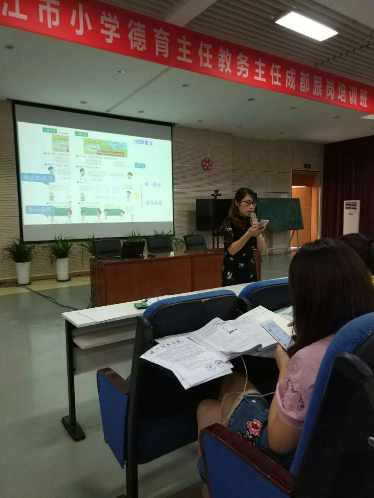 其次,欧小丽老师以“乘上乘法的翅膀”之主题,对第三、五、八单元进行教材解读。欧老师突出对教材中知识点、易错点的解读,结合大量具体教学案例,深入浅出地分析如何突破重难点,并让老师们利用微信查当下最新的教学设计理念和大家交流乘法意义和乘法口诀最有效的教学设计。她谈到,乘法的本质就是“几个几相加”,教学中一定要关注点包括数形结合、几何直观、数感、模型思想等方面,可以采用“问题-思考-分享”的教学方法。