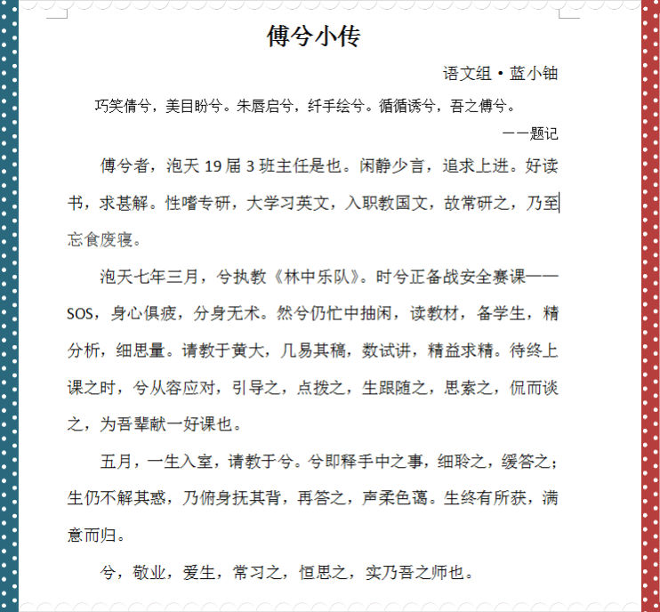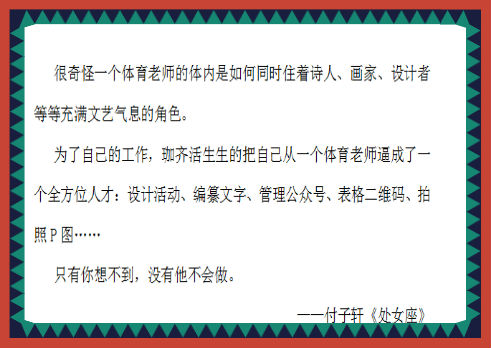 这样的活动,让大家明白学校大力弘扬的爱岗敬业、乐于奉献、享受职业等良好品质,已经被老师们一贯践行。同事之间彼此的欣赏、关爱,会让学校更有凝聚力。所以,我们的爱一定要让同事看得见!
