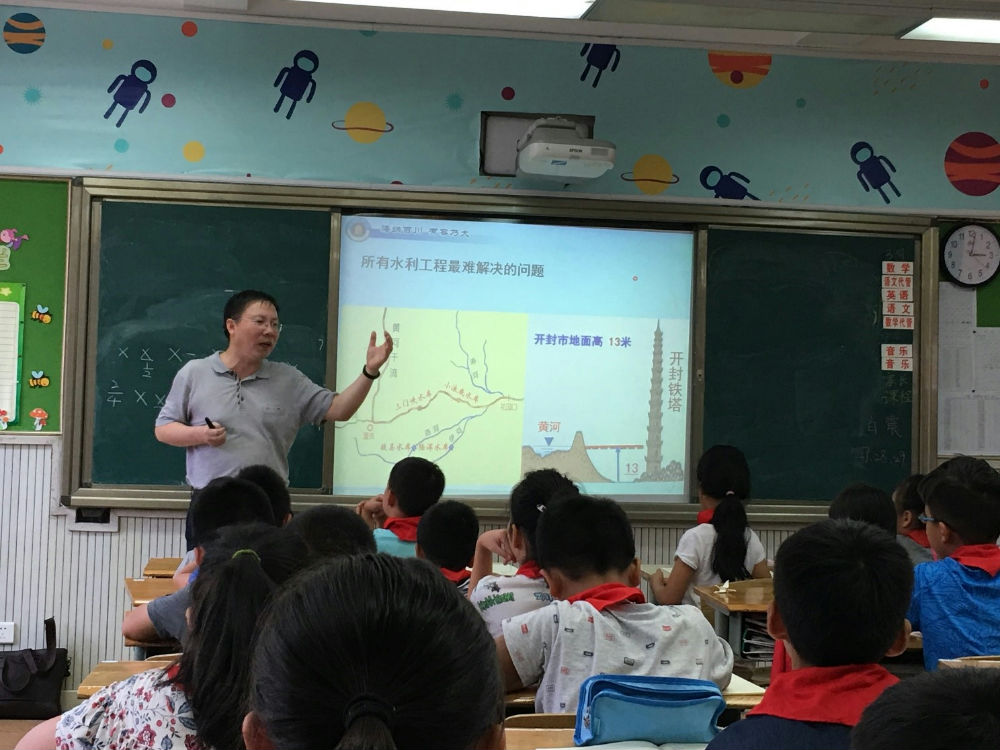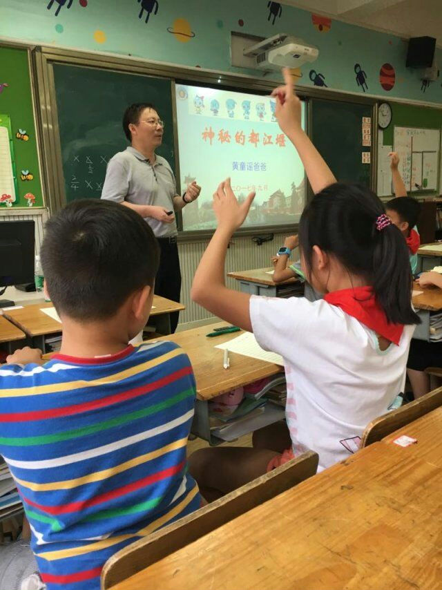 2017年9月13日,孩子们期待许久的家长课堂又开课了。开学第一堂课是由黄童谣爸爸为我们讲述的神秘的都江堰。