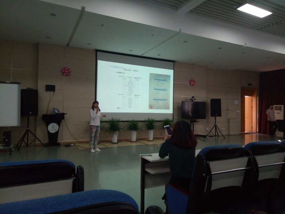 9月30日上午第3、4节课,报名的七个班级在二楼阶梯教室开展了形式多样的读书活动:诵读、我的一本好书推荐演讲、班级共读书目交流、读书笔记展示……活动充分体现了课内课外的融合,阅读主题鲜明、全班学生参与。