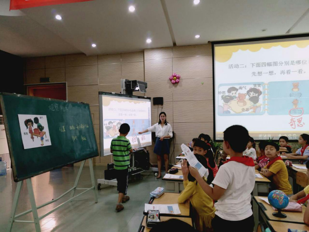 2017年9月21日下午2点, “一对一环境下 小学数学分享式教学课例研讨”活动暨游琼英小学数学名师工作室和泡小天府数学学科实训基地,三项活动在我校多媒体教室举行。我组的陈平老师和沈梅老师在本次活动中,同课异构三年级上册二单元《观察物体》第一课时《看一看(一)》。沈梅老师用素课教学,陈平老师用“一对一技术”教学,学生分享精彩纷呈。课后教研室张所长和在座的听课老师对两节课评价颇高。