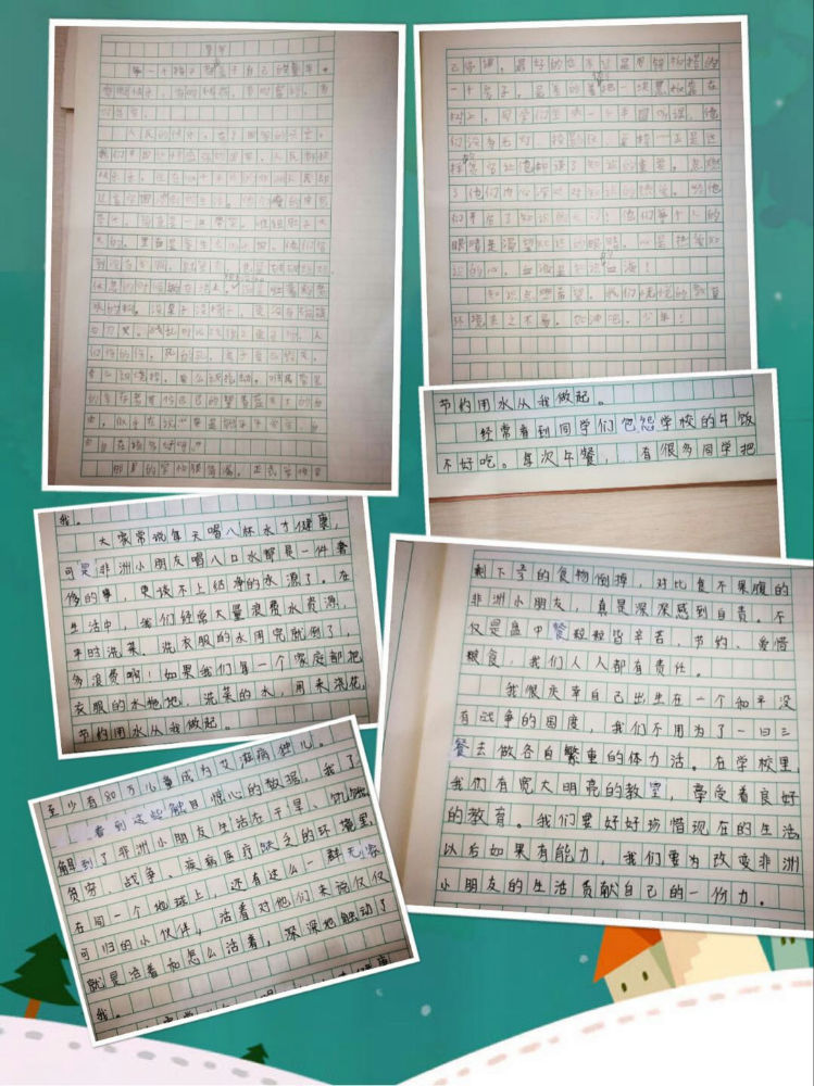 刘叔叔继续描述了非洲孩子们的“学校”,可那根本称不上学校……一棵大树下,孩子们围成半圆,盯着那块斜倚破损的黑板,没有桌椅,没有文具,没有课本……可每个孩子都那样渴望、好奇、执着,他们向往知识,向往自由,向往外面的世界。